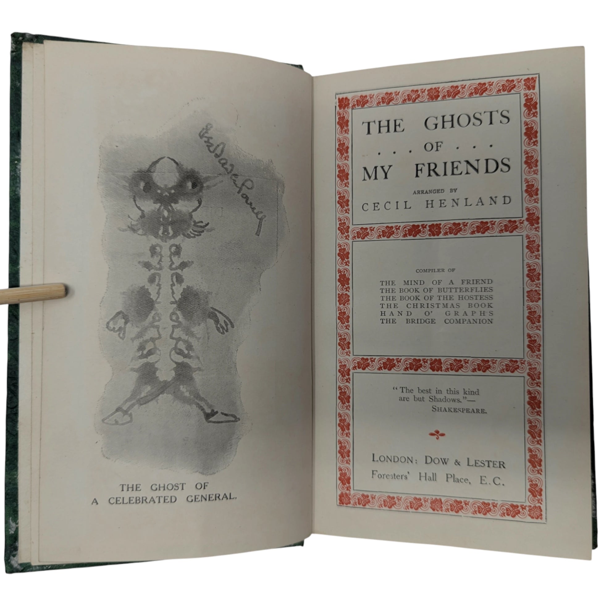 HENLAND, Cecil (Arranged by). The Ghosts of My Friends. 170 x 102 mm. London: Dow & Lester, circa 1908 (date of earliest signature and through copies held at the Victoria and Albert Museum Libraries).