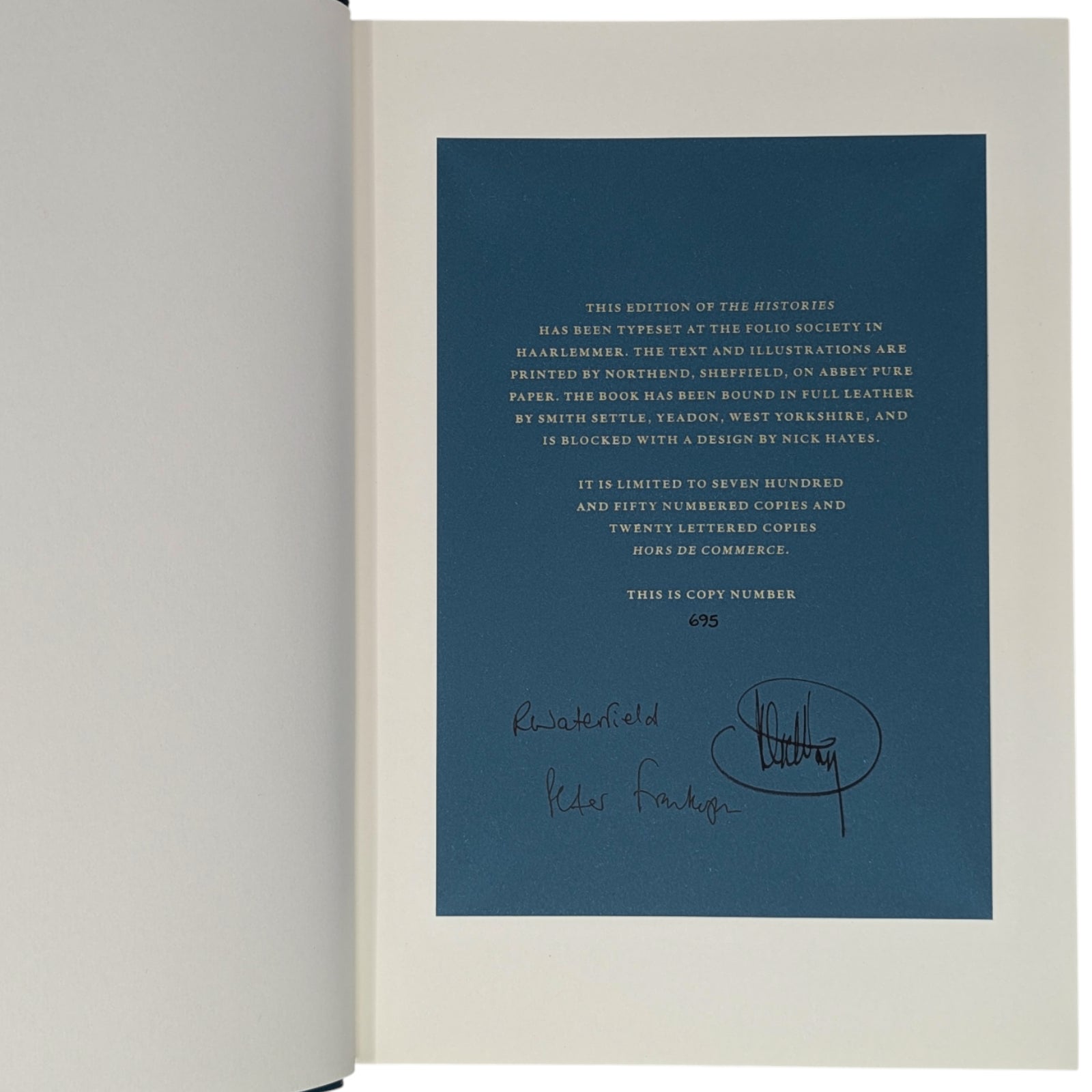 The Histories, by Herodotus. London: The Folio Society, 2020. Limited edition of the first great work of history, exquisitely hand-bound in full-grain leather and limited to only 750 hand-numbered copies, out of which this is copy number 695.