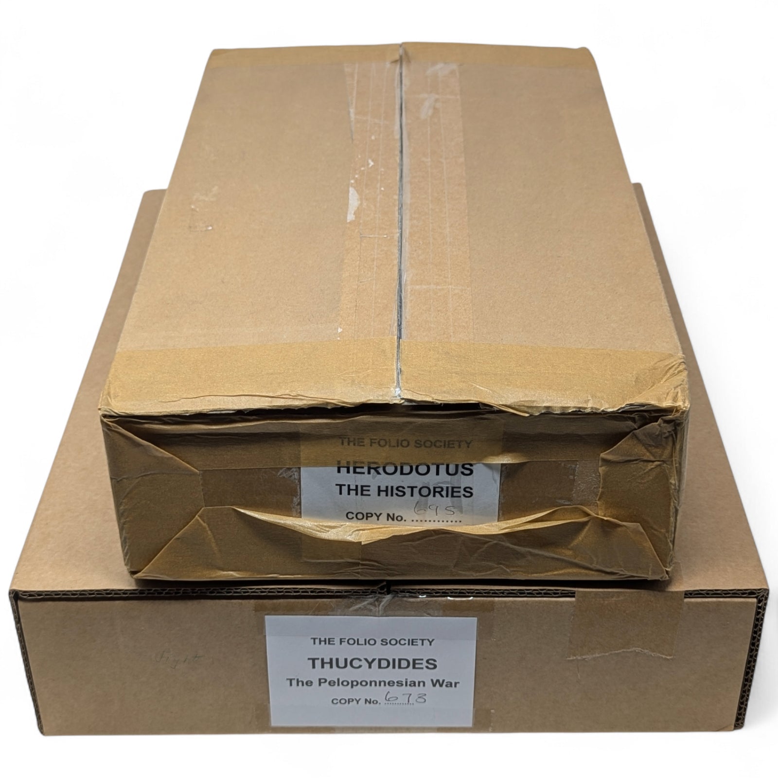 A unique opportunity to acquire Folio Society's limited editions of Herodotus' The Histories and Thucydides' The Peloponnesian War, both as new and unread, in the original wrapping and boxes, in very good condition.