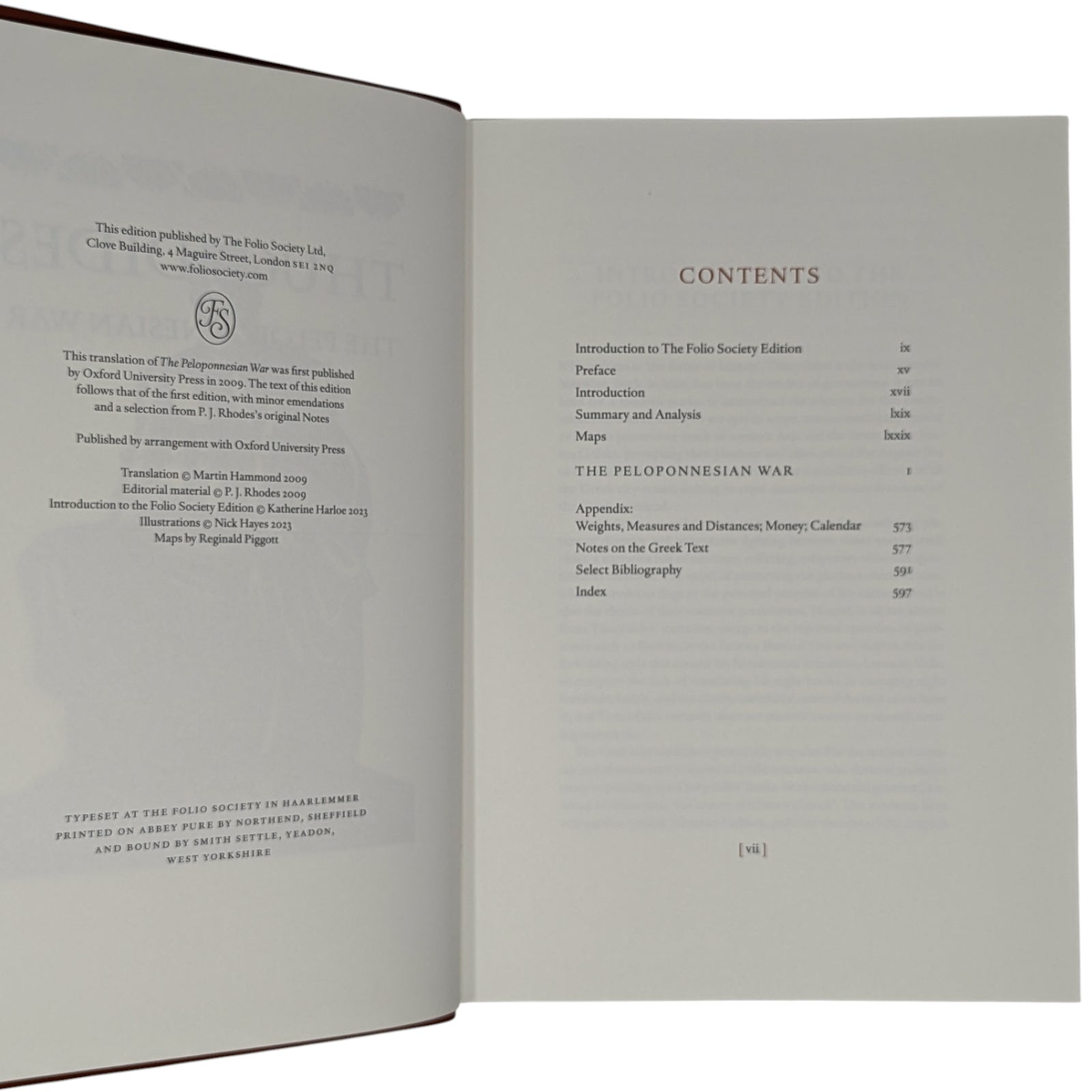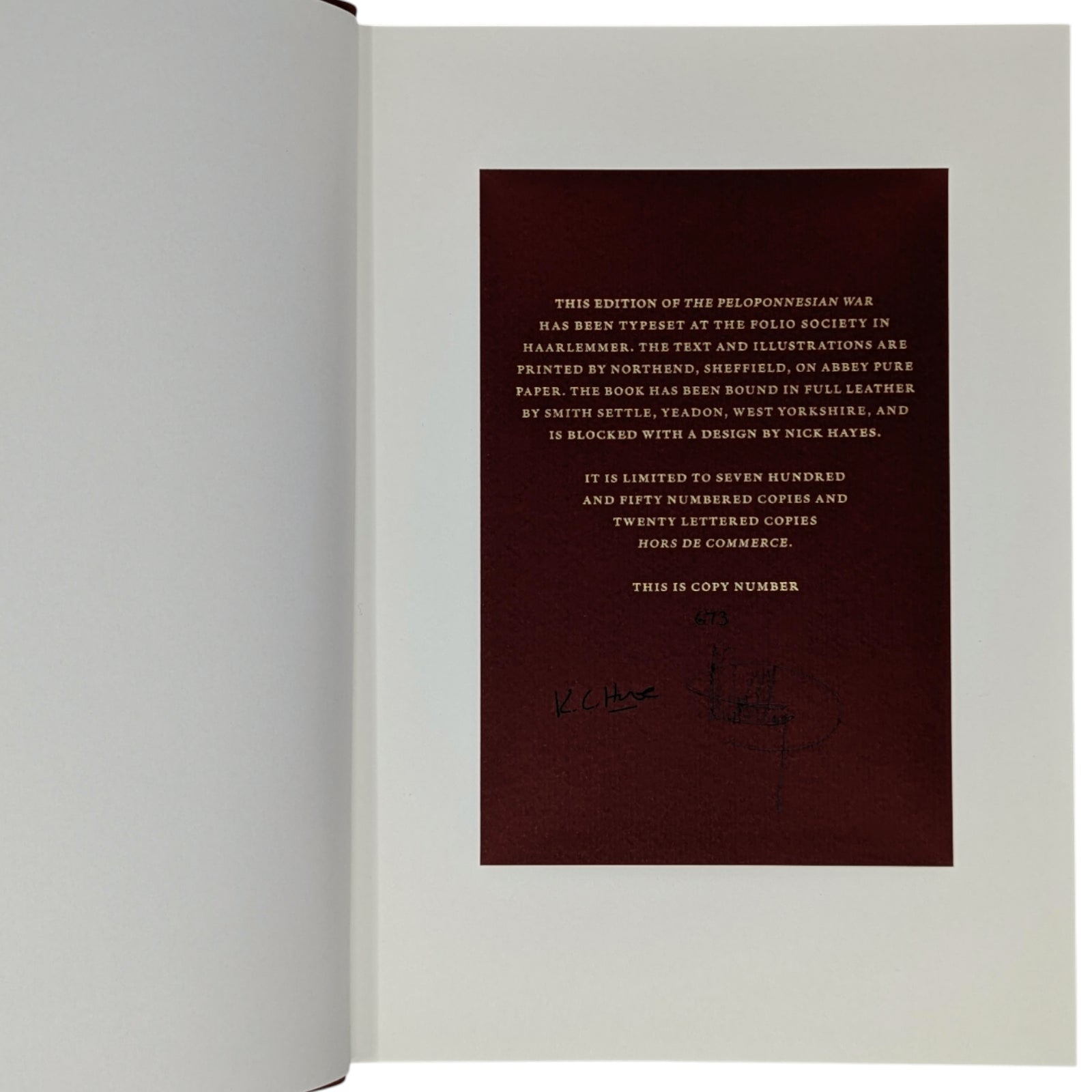 The Peloponnesian War, by Thucydides. London: The Folio Society, 2023. Limited edition of the first great military history, expertly handbound in full-grain leather and limited to only 750 hand-numbered copies, out of which this is copy number 673.