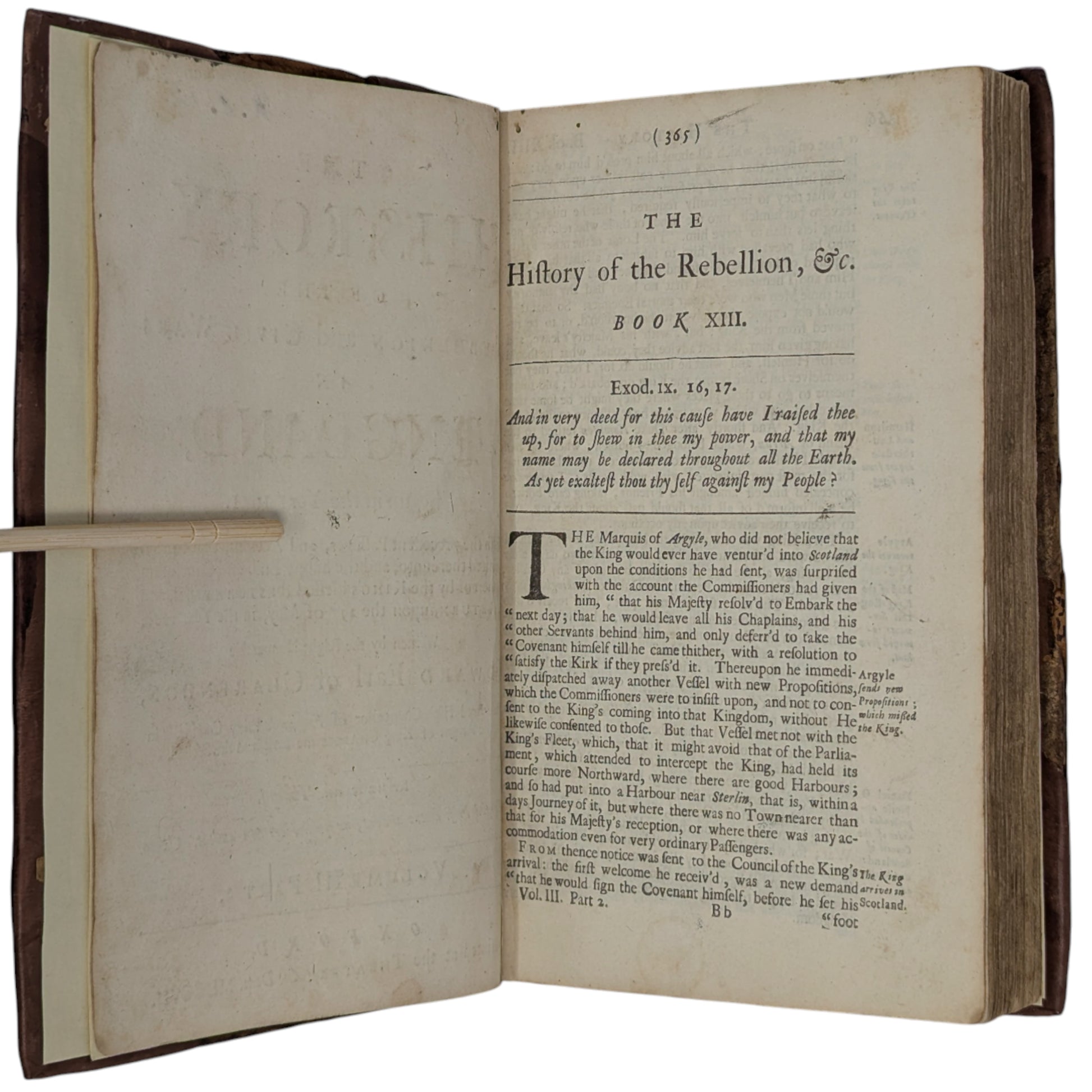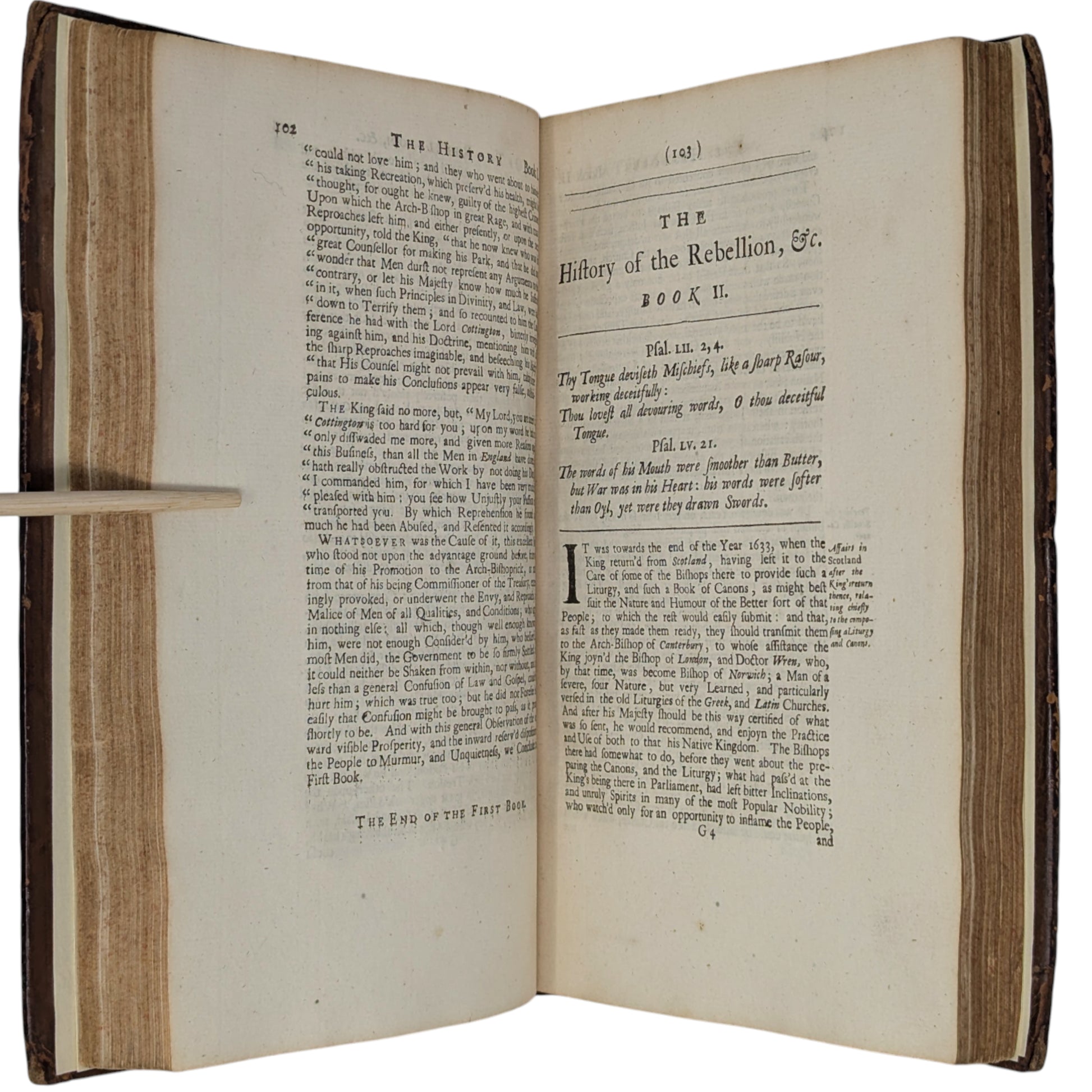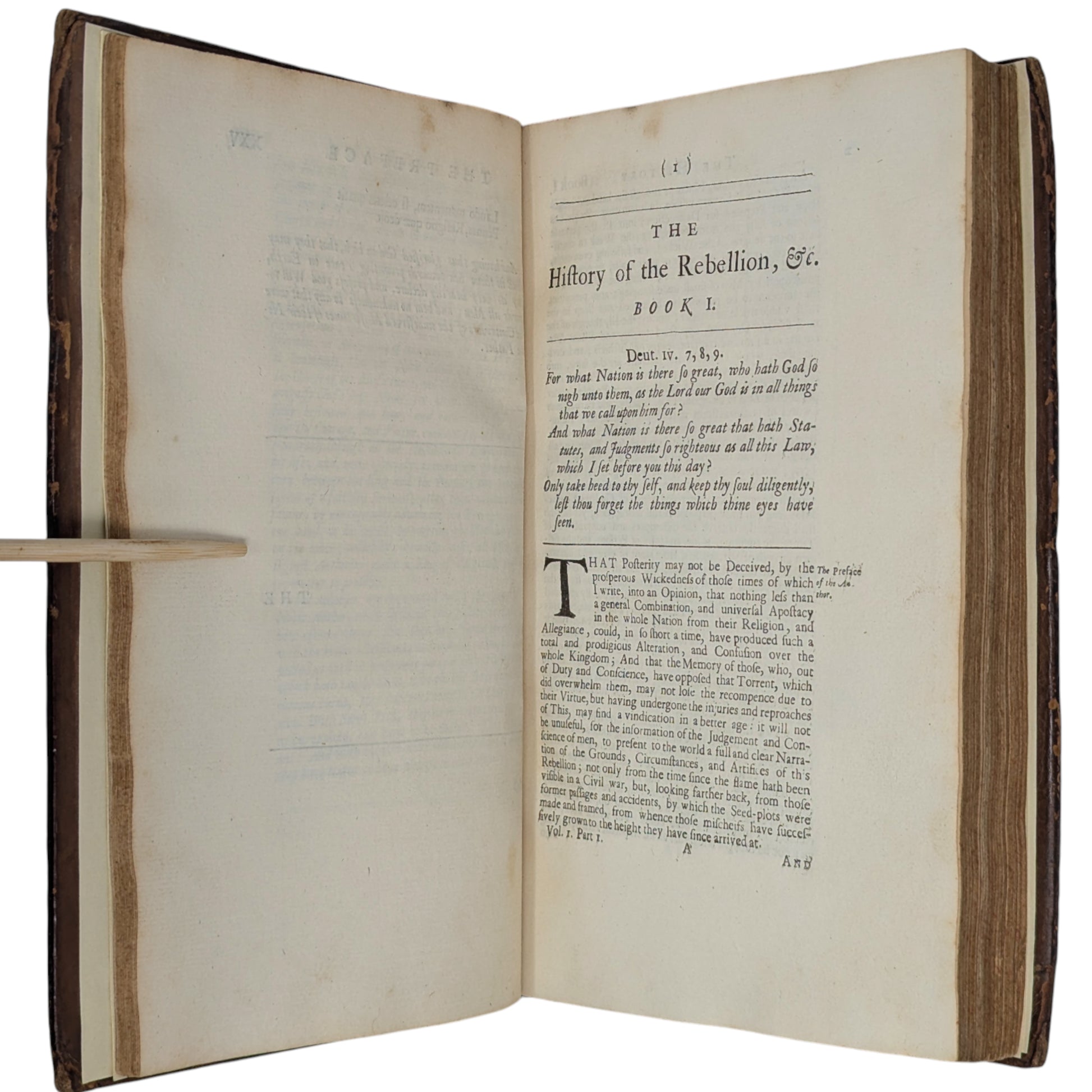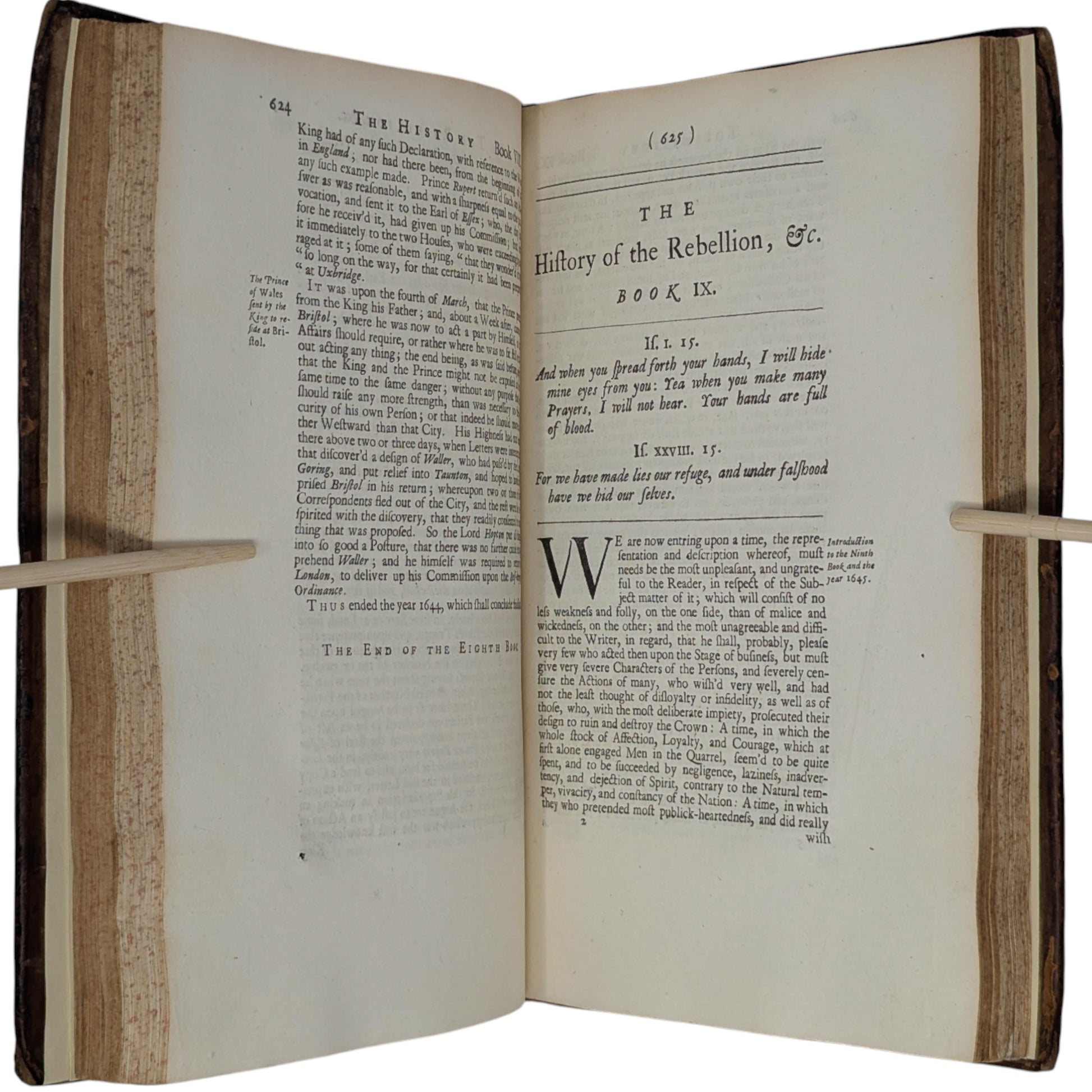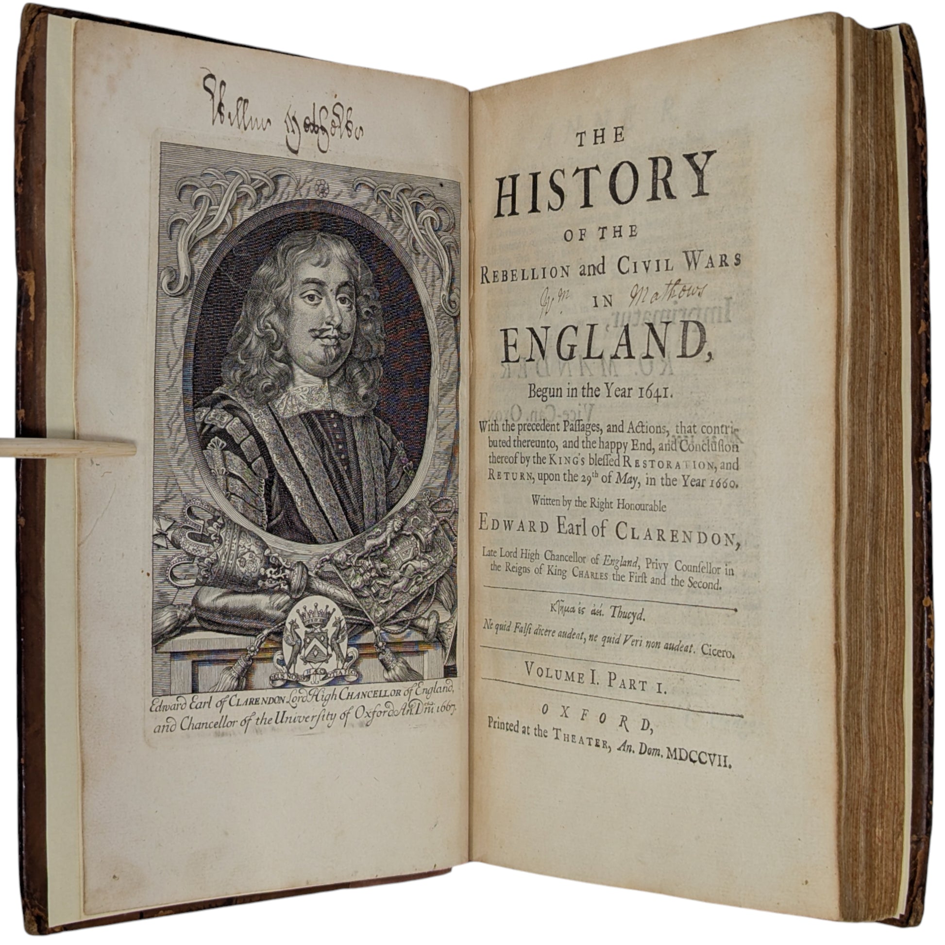 CLARENDON, Edward Hyde, Earl of. The History of the Rebellion and Civil Wars In England, Begun in the Year 1641. With the precedent Passages, and Actions, that contributed thereunto, and the happy End, and Conclusion thereof by the King's blessed Restoration, and Return, upon the 29th of May, in the year 1660. Oxford: Printed At The Theater, 1706 (Vol II, Part 2) - 1707 (all others).