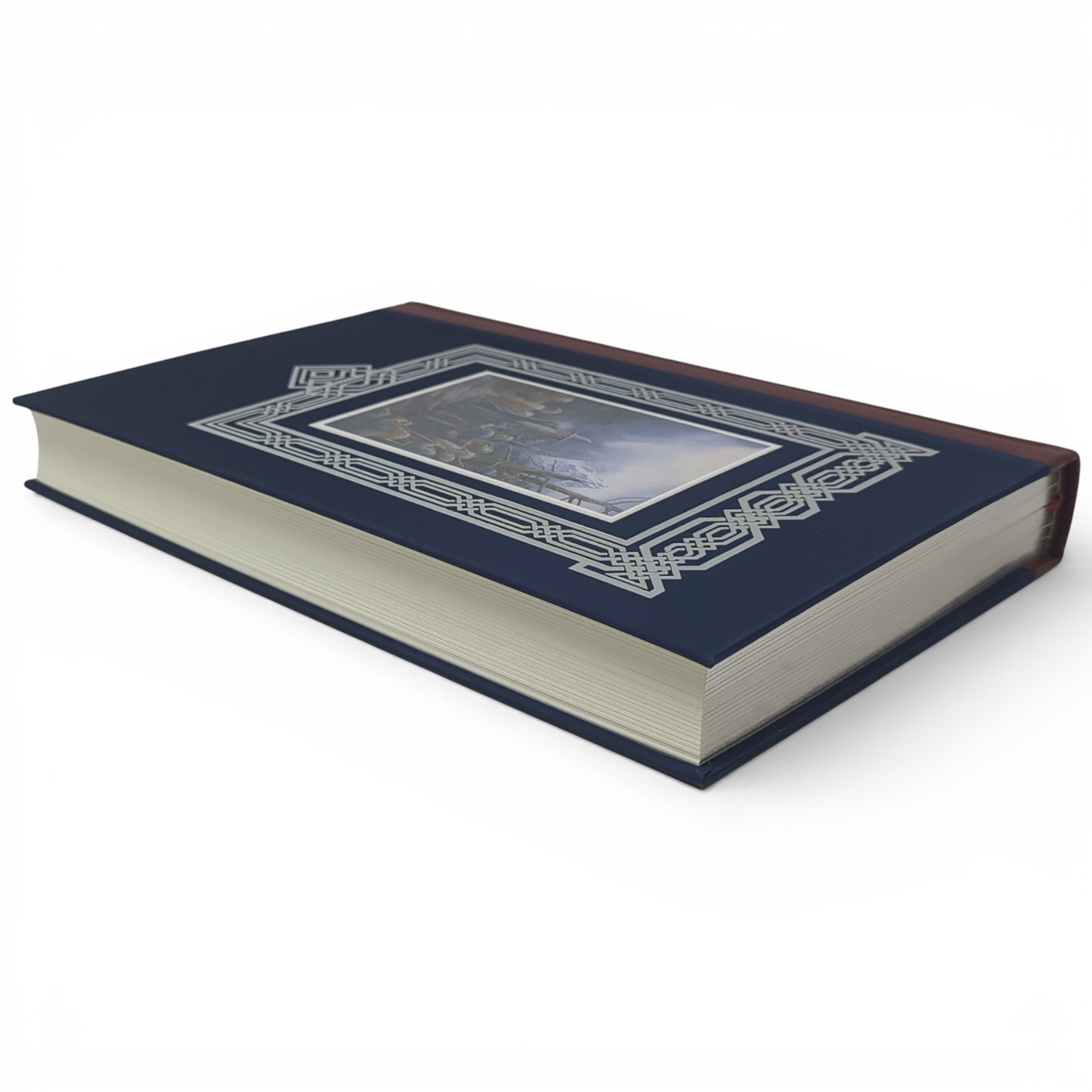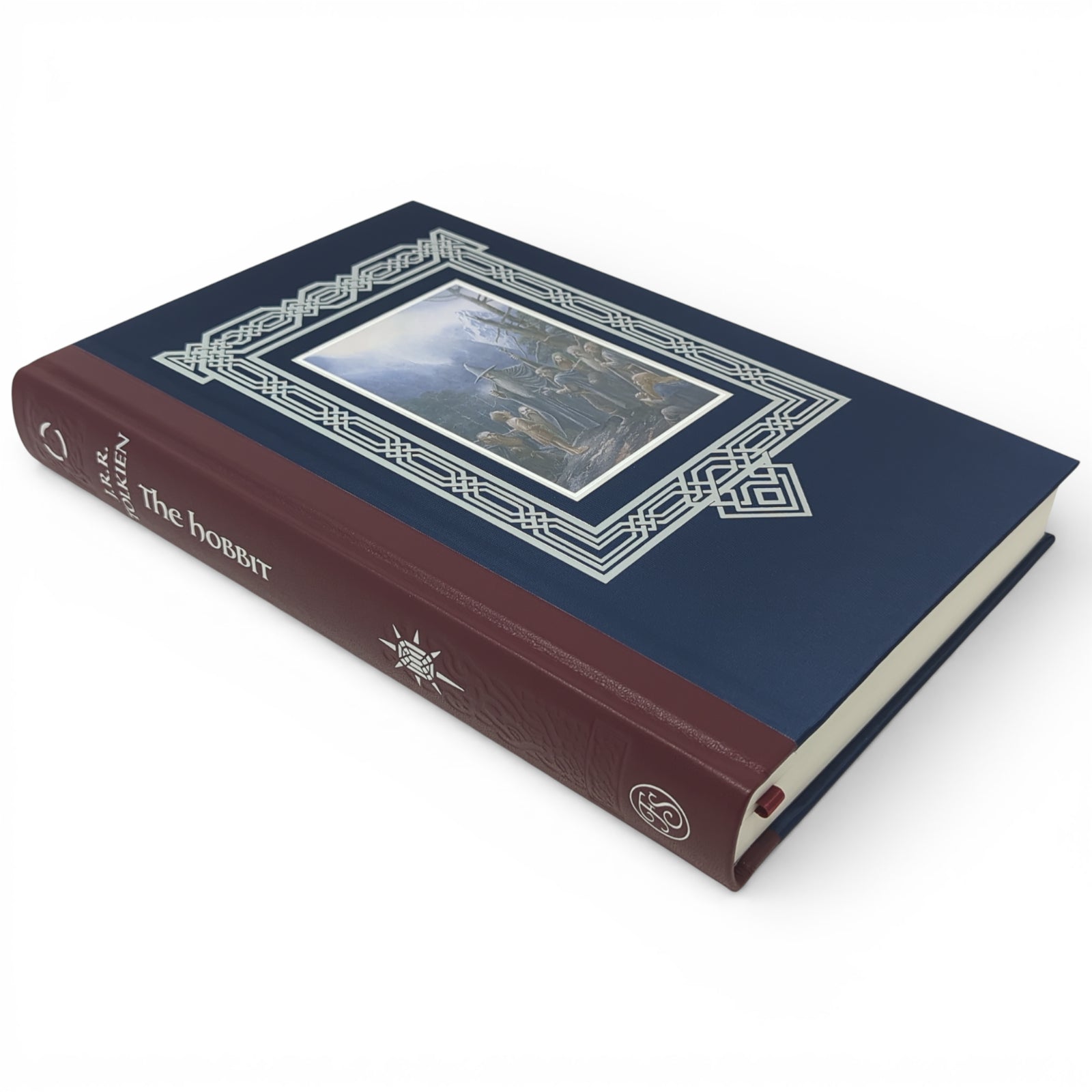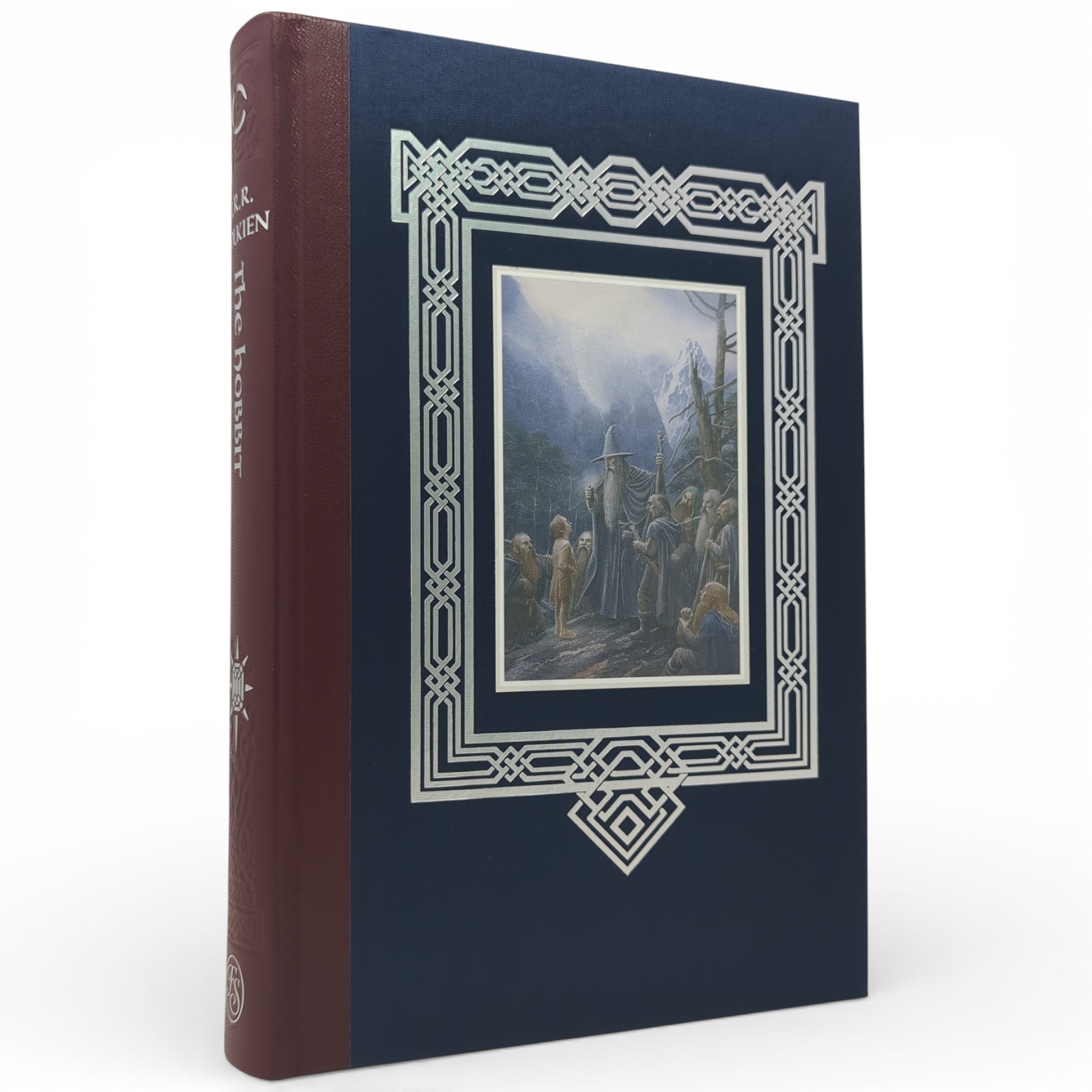 Beautifully quarter-bound by L.E.G.O. in Vicenza, Italy in Spaccato di Montone leather with cloth sides featuring an inset label with an illustration by Alan Lee. Typeset at The Folio Society in Dante, with Testament as display. The text has been printed on Munken Pure Paper with silver top edges. Twenty-eight (28) colour plates are printed on Veltique Paper and tipped within decorative borders, with additional numerous black & white line integrated illustrations. 344 pages printed in 2 colours. Ribbon marker. Original maps, including Thror's map and a map of Wilderland, surrounded by a border by Alan Lee, are housed in a cloth case. A separate giclée print is presented in a folder of Sirio Pearl paper. All are housed in a cloth slipcase that has an illustrative lining and is blocked with a design by the artist. Trimmed size 297mm x 194mm.