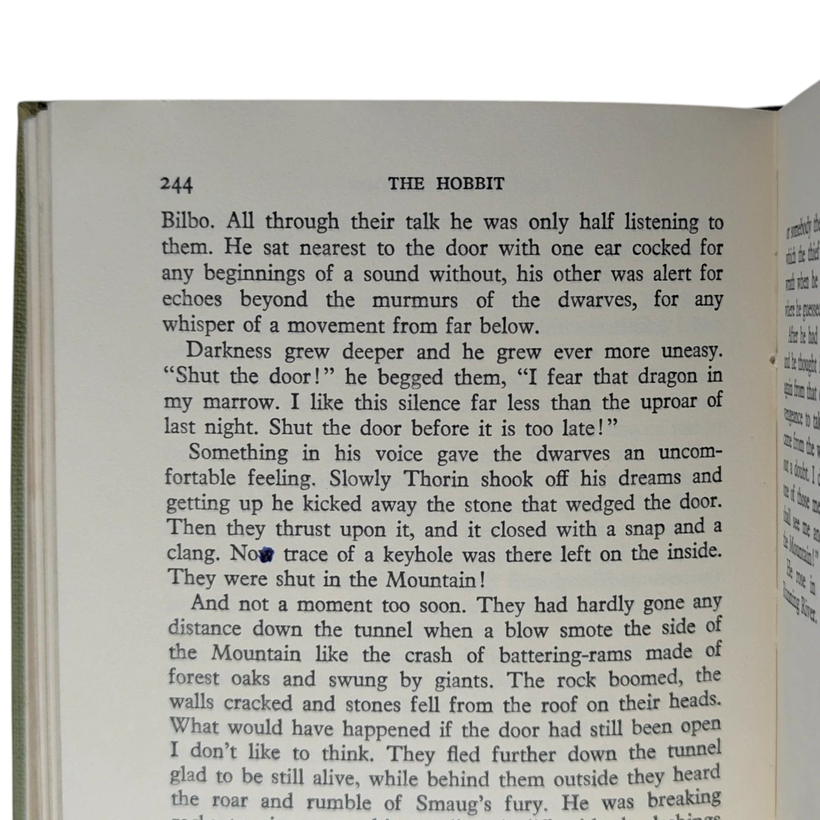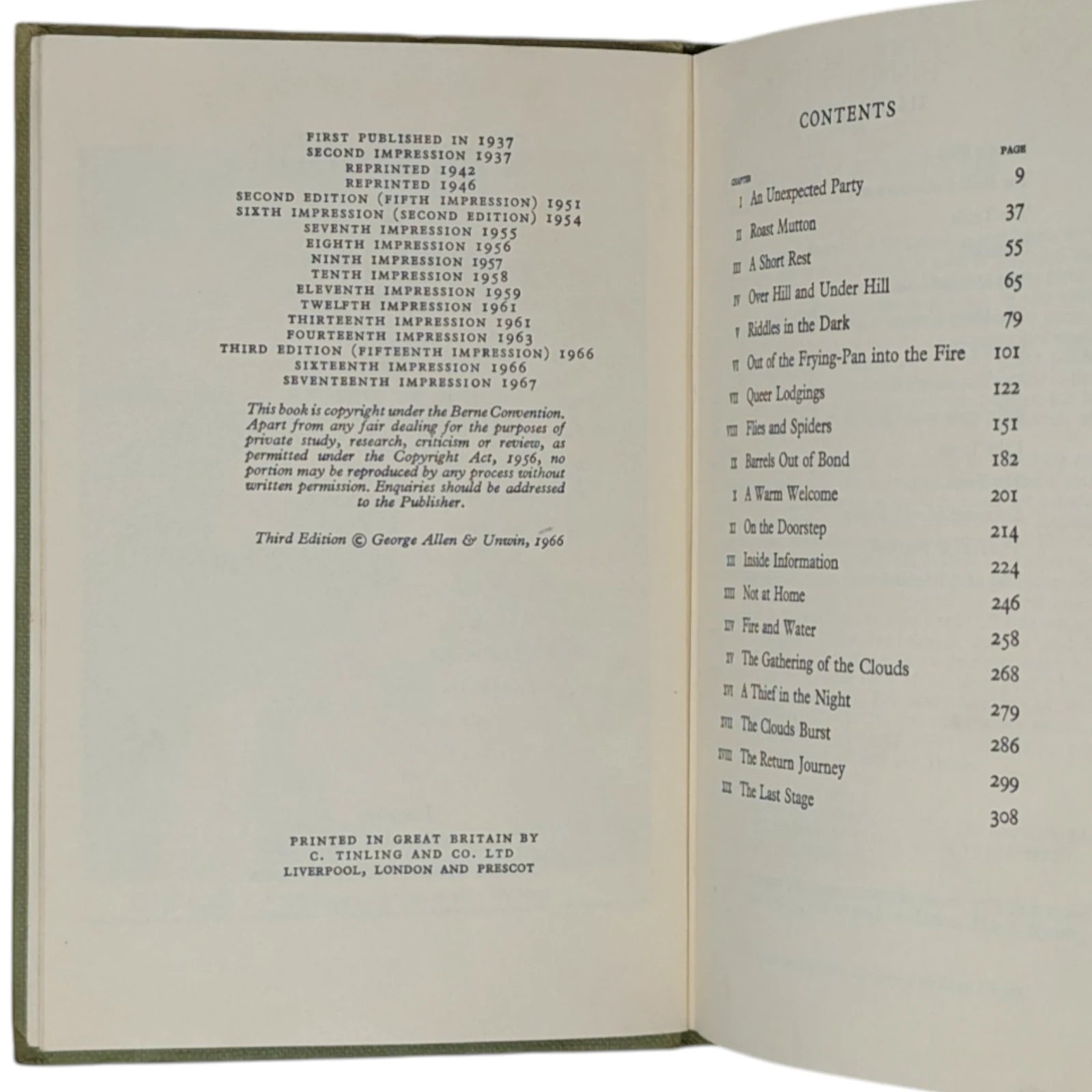 A third edition, 17th printing of this beloved story of a humble hobbit named Bilbo Baggins who is unexpectedly swept into an epic adventure (despite adventures being "nasty disturbing uncomfortable things [... that] make you late for dinner!”), joining a group of dwarves on a perilous journey to reclaim their lost kingdom from the fearsome dragon Smaug.