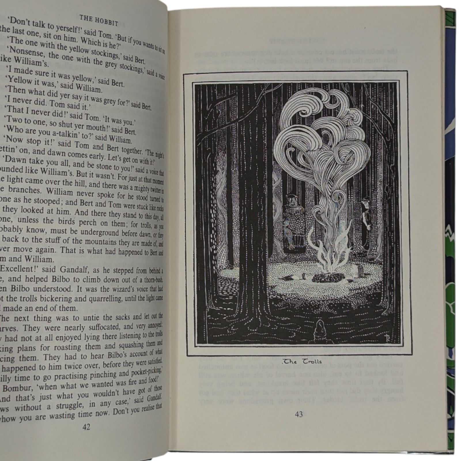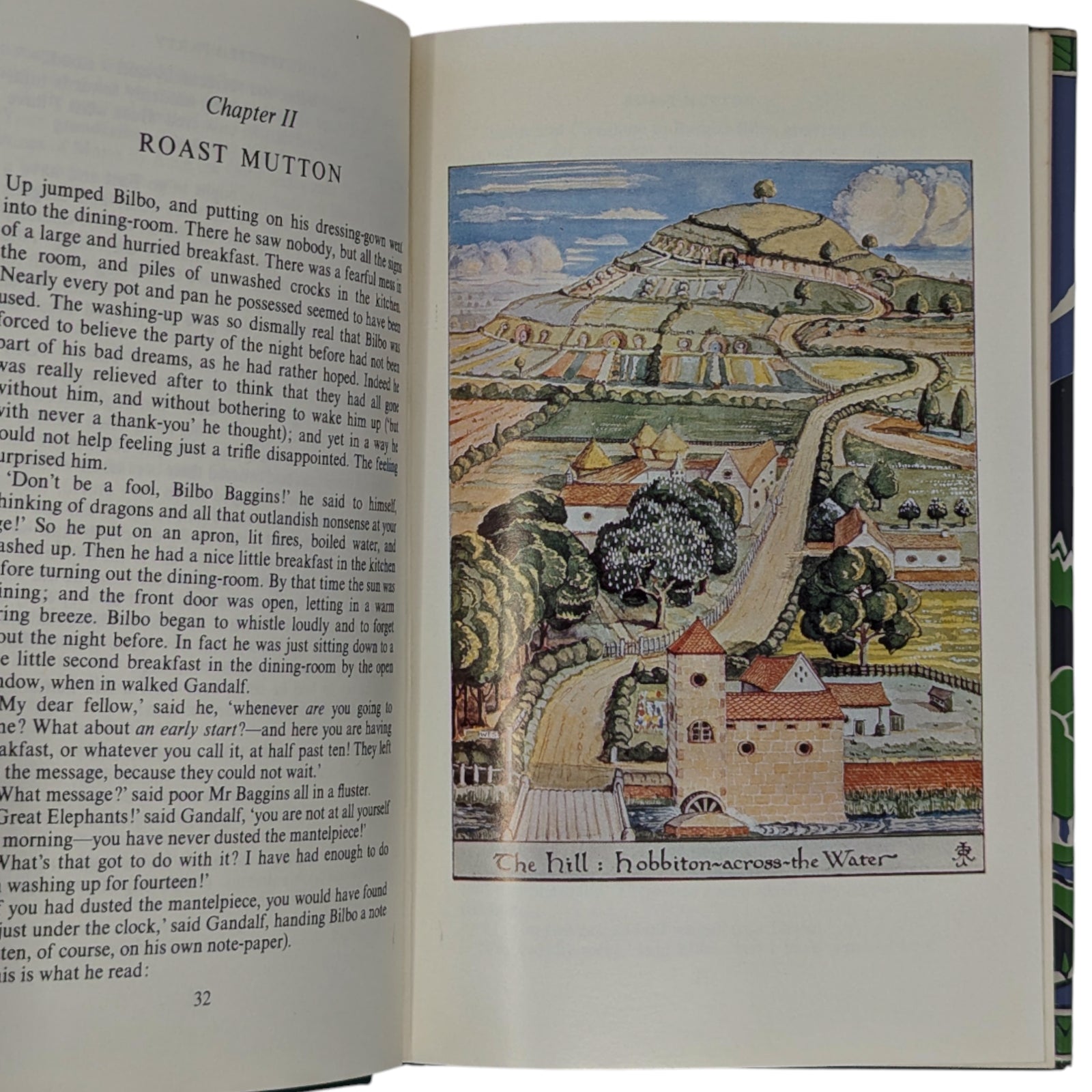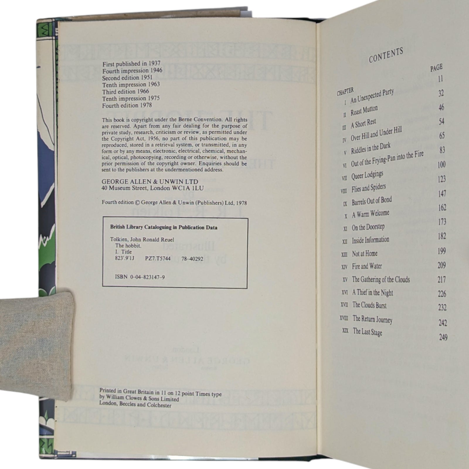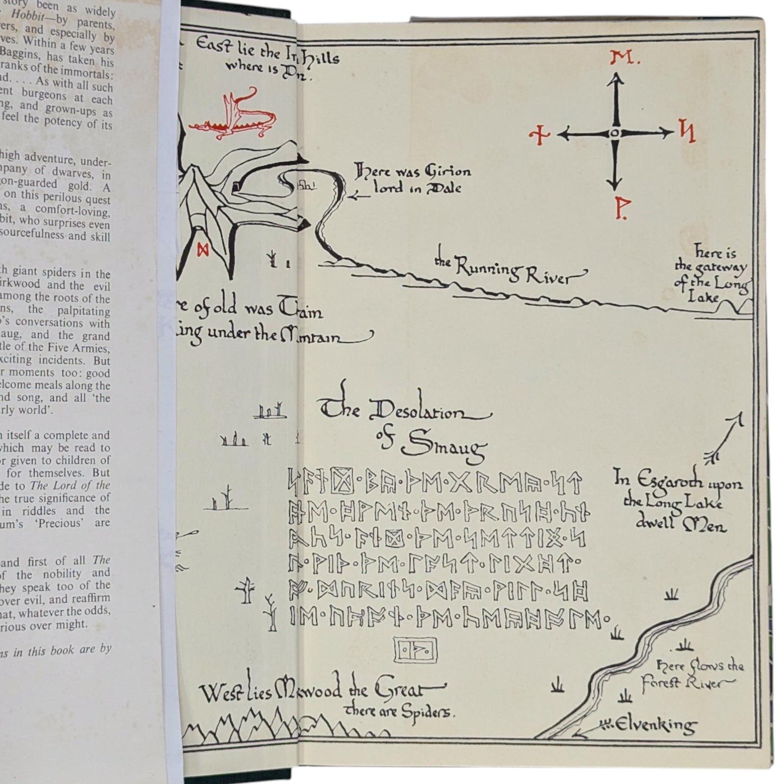 The Hobbit or There and Back Again, by J. R. R. Tolkien. London: George Allen & Unwin Ltd, 1978. Fourth edition, first impression, 1978. Publisher's original green cloth binding, with gilt lettering and decoration to spine. Map endpapers. In original, unclipped (unpriced) dust wrapper. Illustrated by the author.