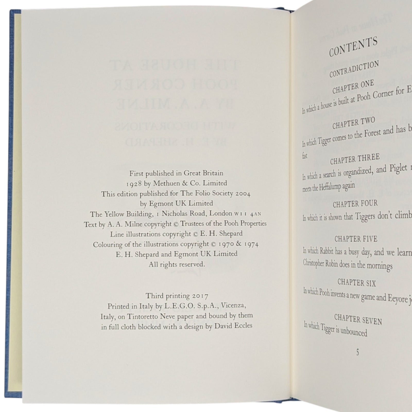 MILNE, A. A. The House at Pooh Corner. London: The Folio Society, 2004. Third printing thus, 2017, issued as a standalone volume .