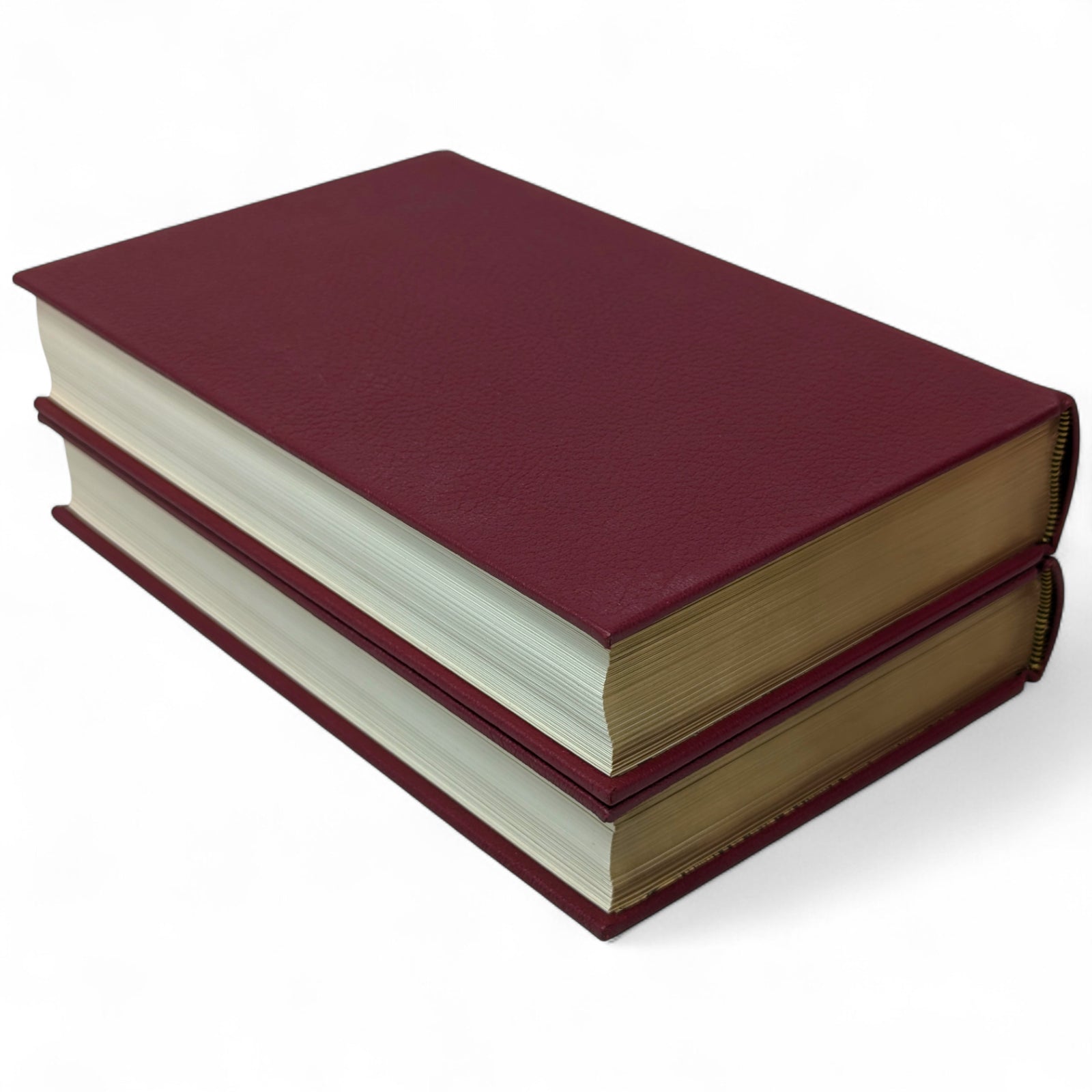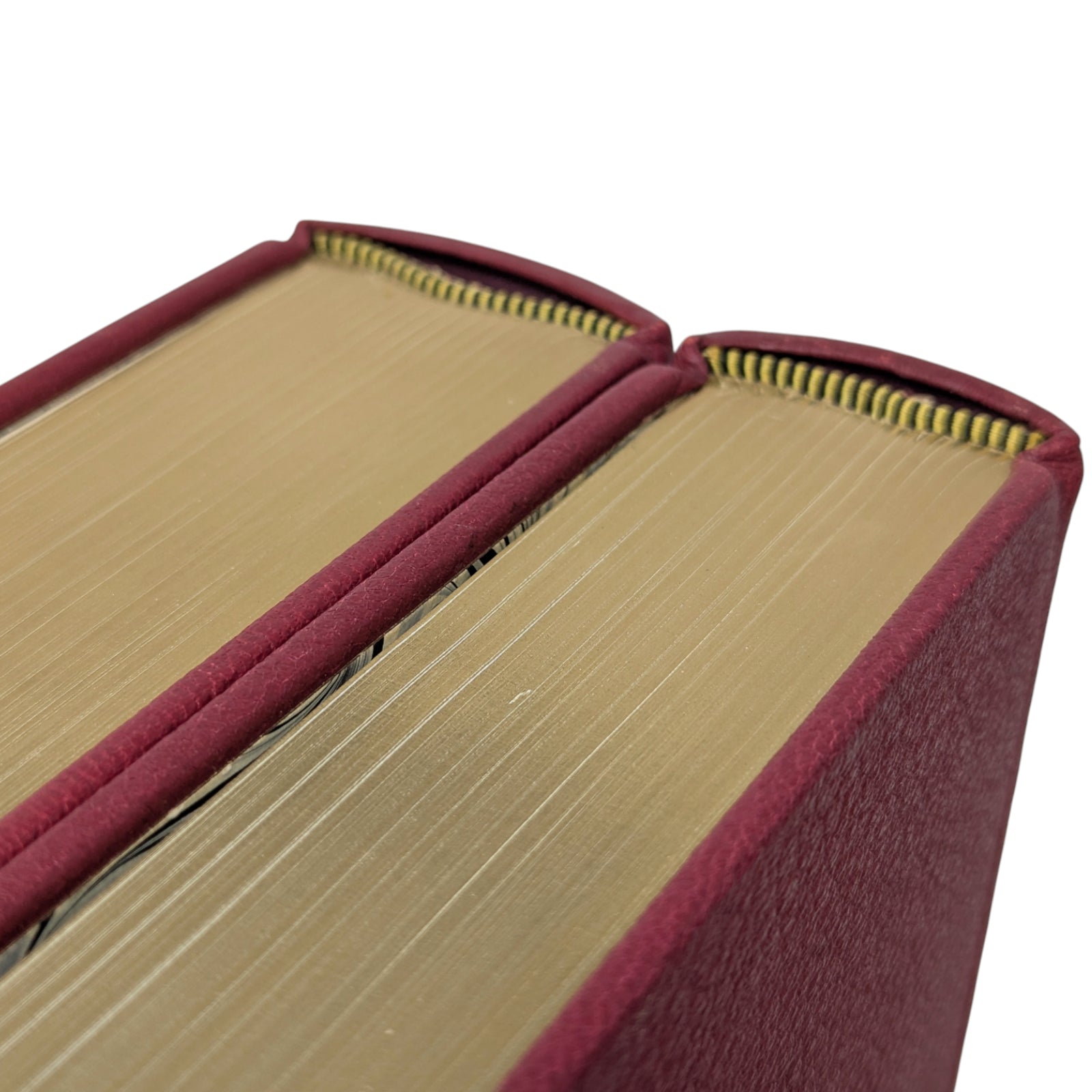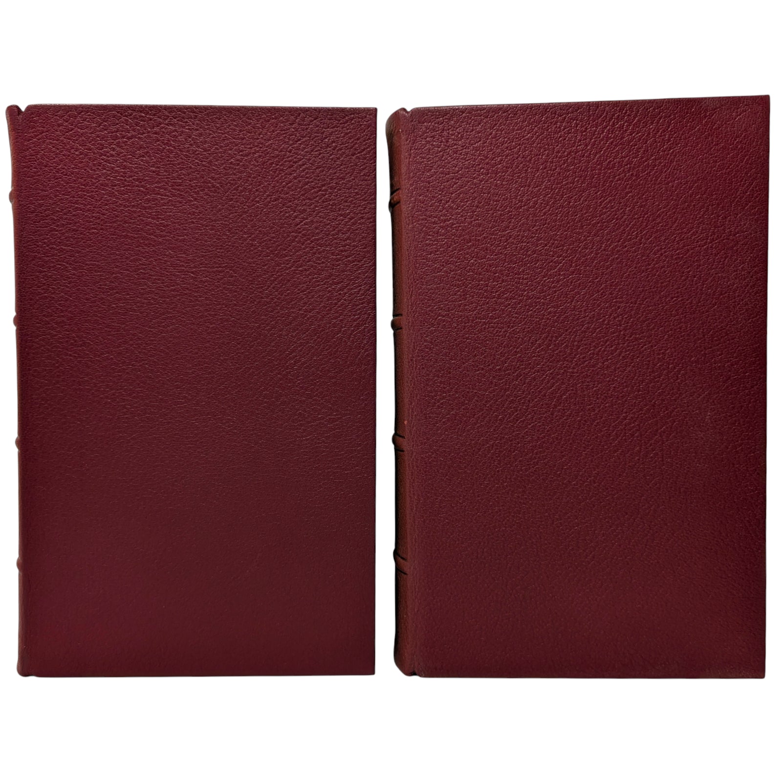 Very good copies, bindings square and firm, with a little innocuous wear to the slightly dry leather, mild sunning to spine, a few small ear marks and marginal offsetting to endpapers. In like slipcase that shows a little shelf-wear and a couple of shallow bumps, but structurally sound.
