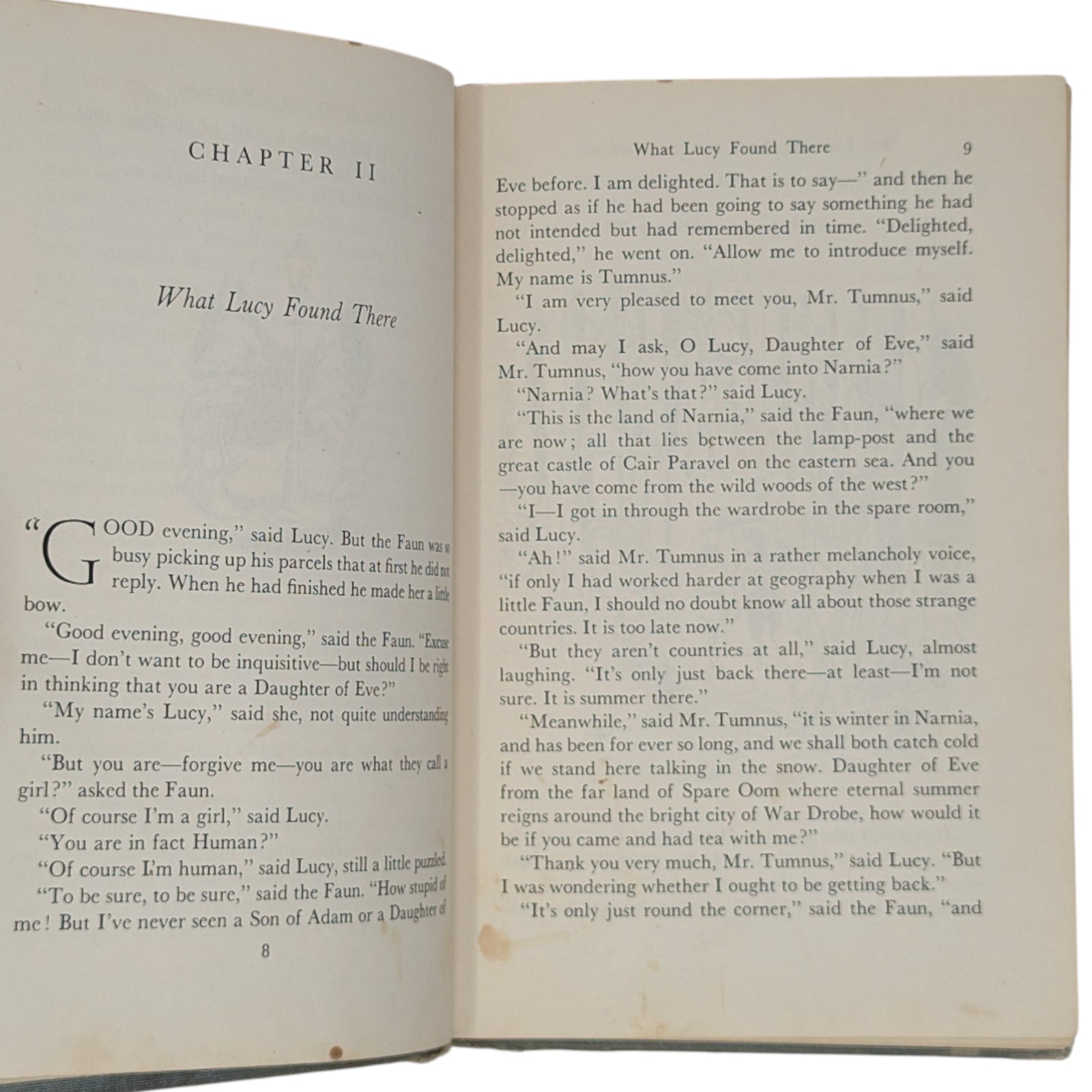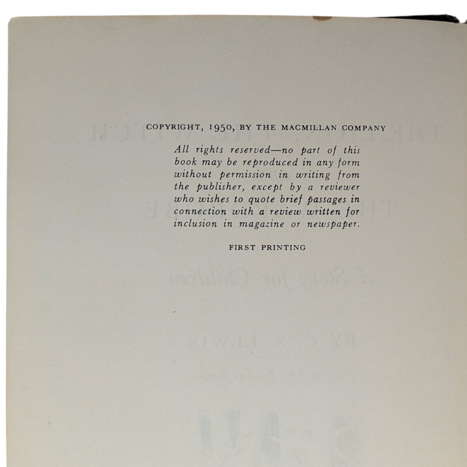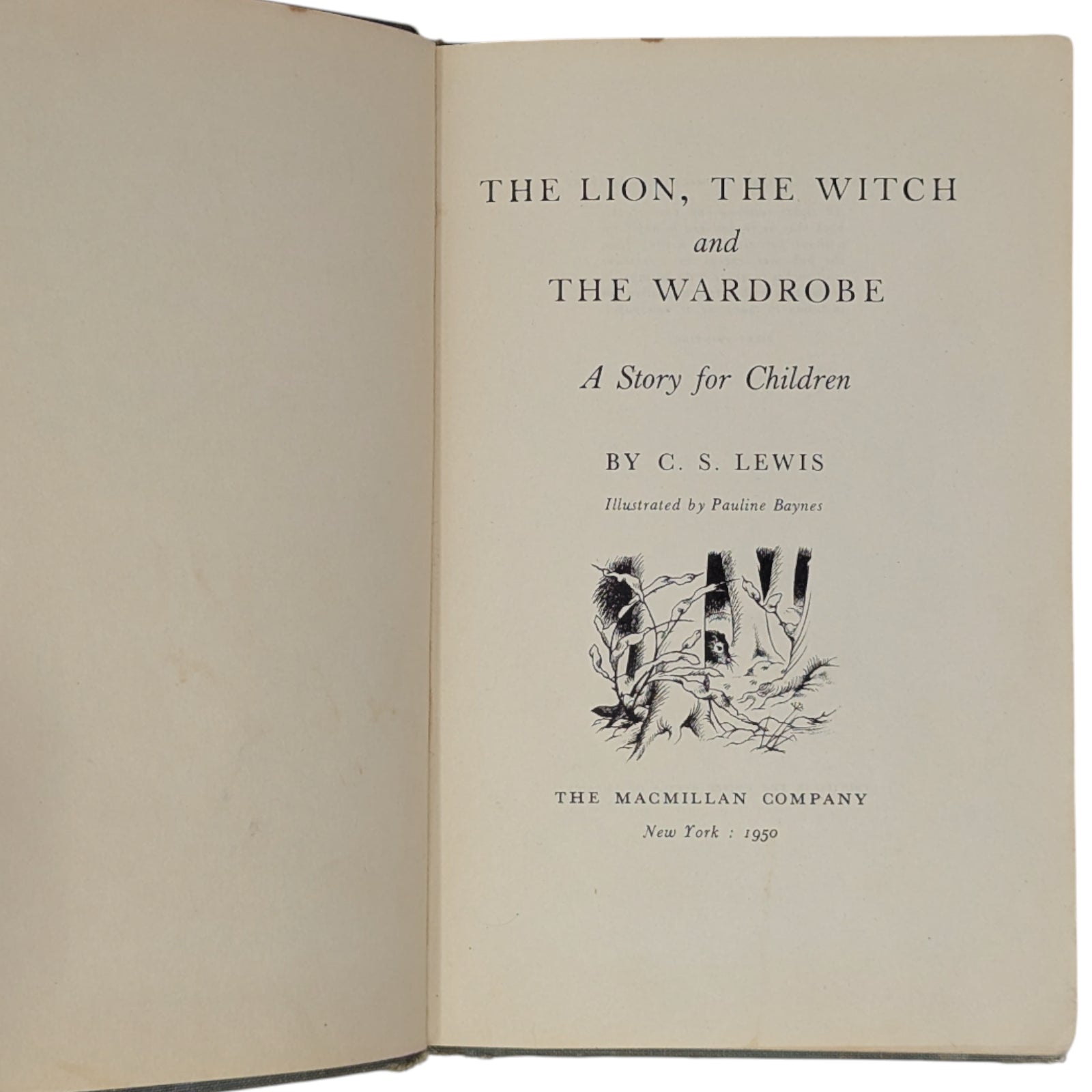 LEWIS, C. S. The Lion, the Witch, and the Wardrobe. New York: Macmillan, 1950. First US edition, first printing of the author's first book in the much-loved Chronicles of Narnia series. Hardcover, 8vo, 154 pp. With many black-and-white illustrations by Pauline Baynes.
