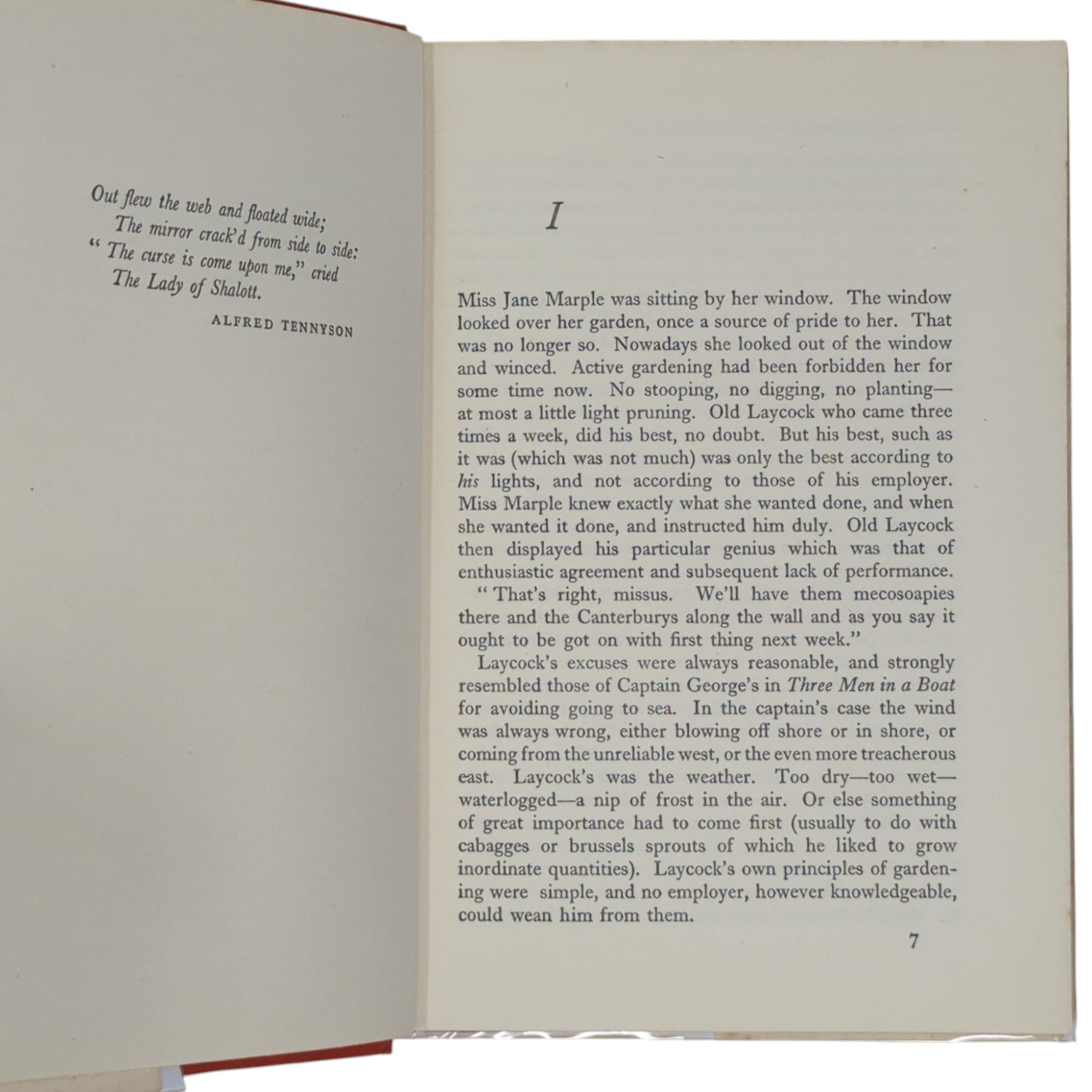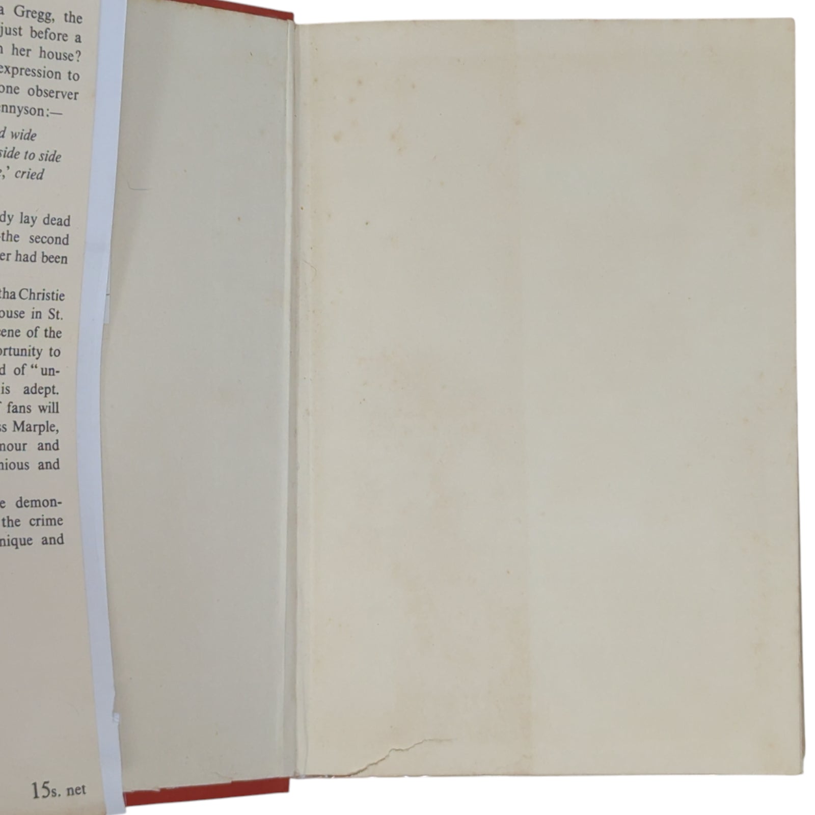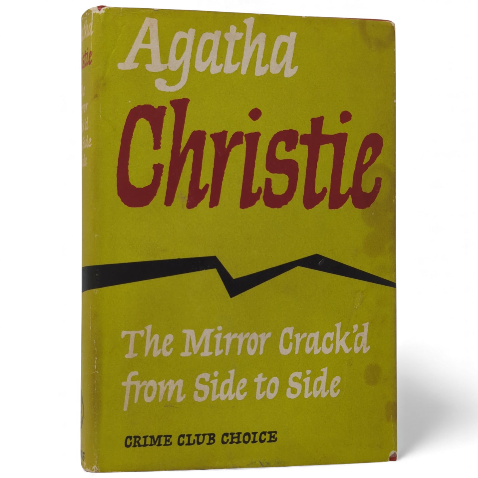 The Mirror Crack'd from Side to Side, by Agatha Christie. London: The Crime Club by Collins, 1962. First edition, first impression; with unclipped dust wrapper. 190 x 130 mm approx. 255 pp. Publisher's red cloth, black titles to spine; in original, unclipped dust wrapper showing price 15s. net to front flap.