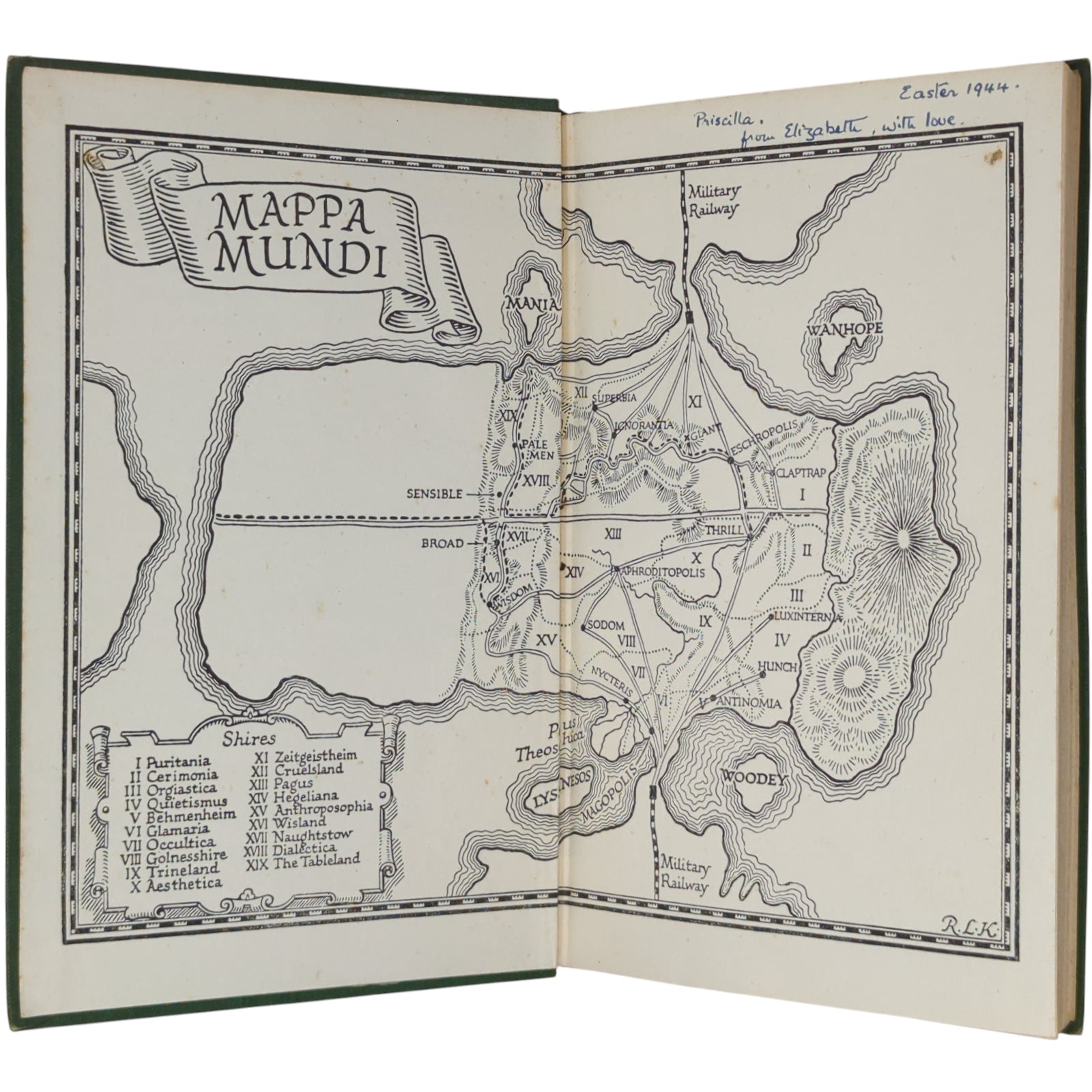 Publisher's green cloth, title label to spine, map endpapers; no dustwrapper. An acceptable copy, binding with a heavy lean and worn and bumped around the edges, corners and spine tips, some foxing to the closed text block, inscription in pen to FFEP and break to gutter at title page. A reading copy.