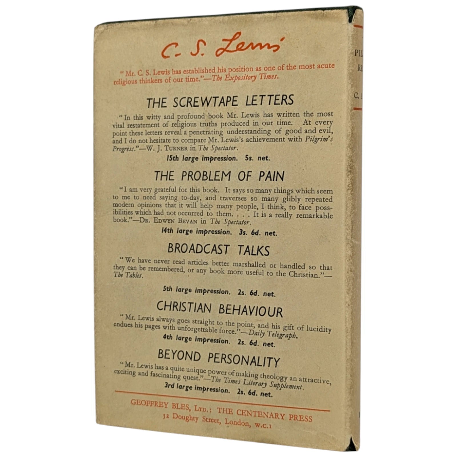 LEWIS, C. S. The Pilgrim's Regress: An Allegorical Apology for Christianity, Reason and Romanticism. London: Geoffrey Bles, 1945. Second reprint of the new and revised edition.