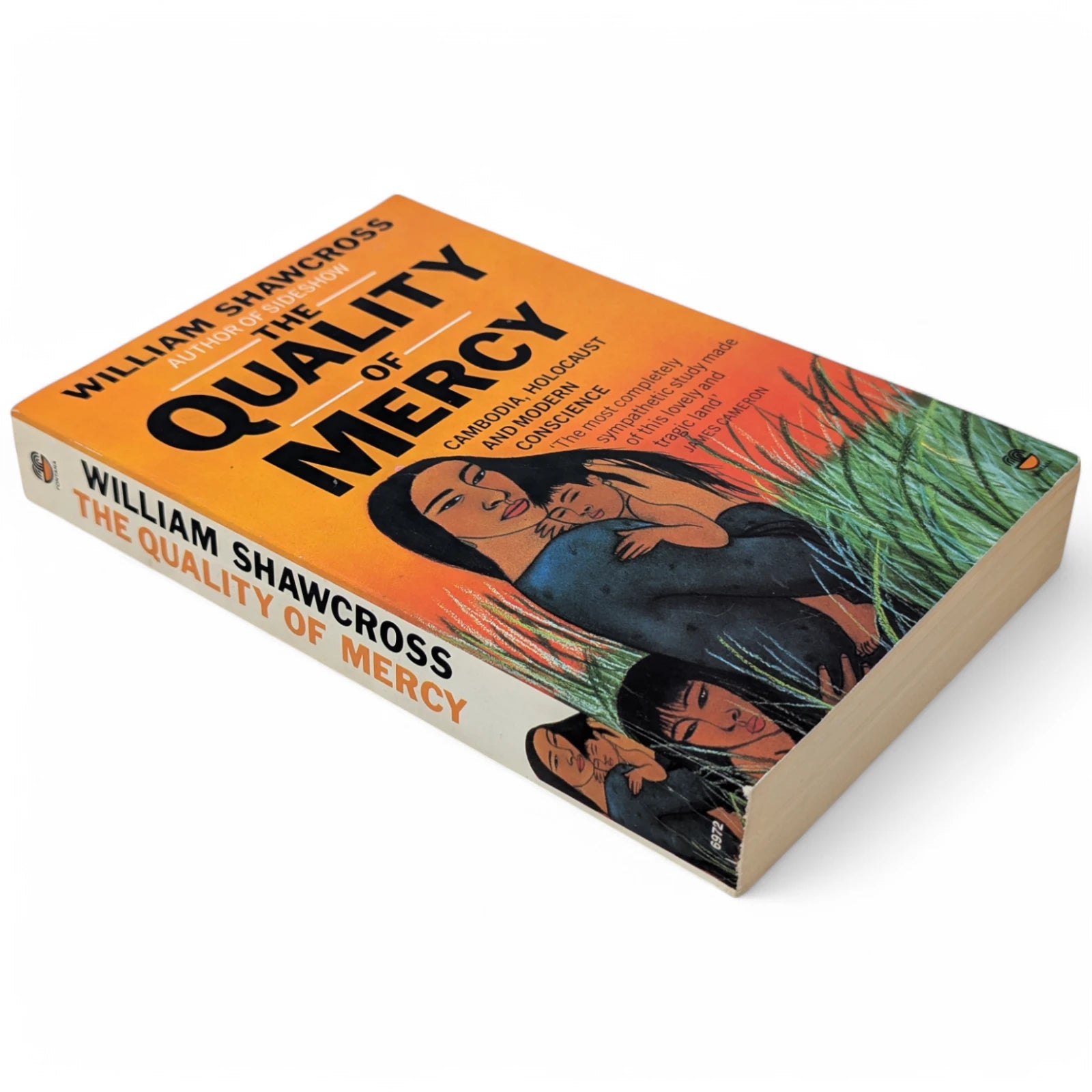 The Quality of Mercy: Cambodia, Holocaust and Modern Conscience, by William Shawcross. London: Fontana/Collins, 1985. First issue of Fontana Paperbacks, with chapter on Ethiopia. Dedicated, signed and dated by the author to half-title.