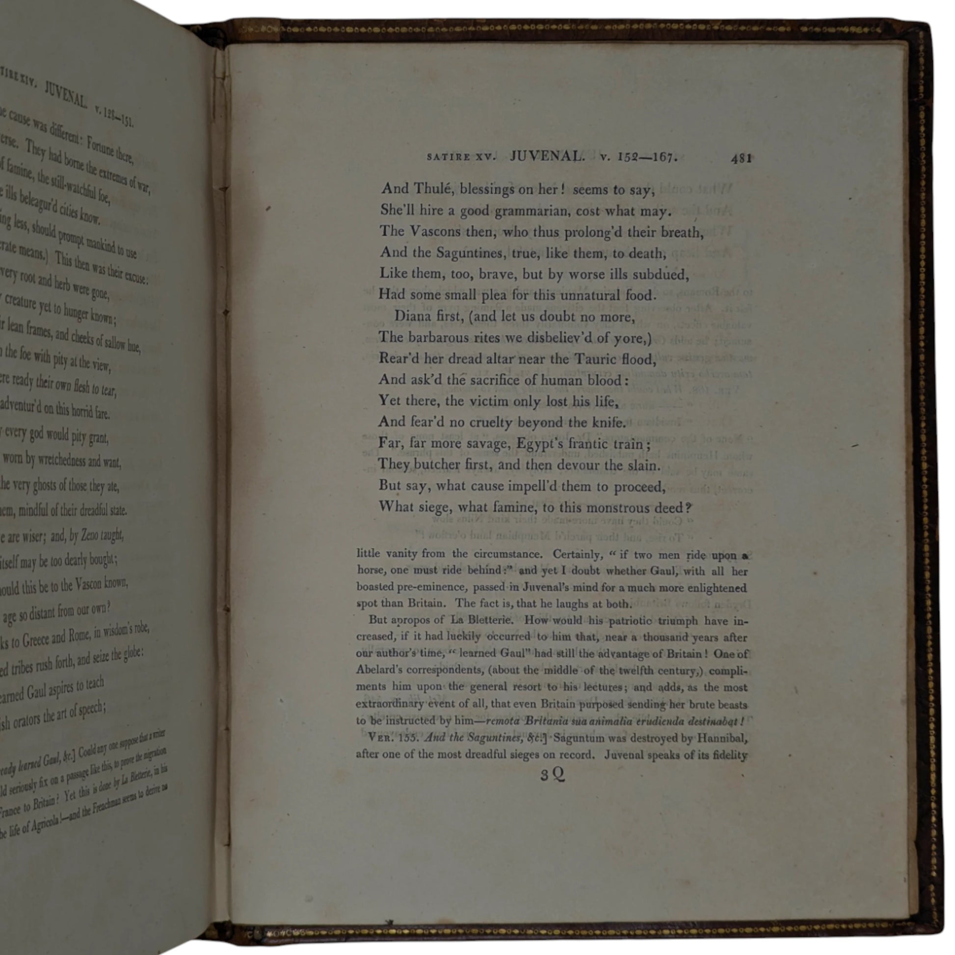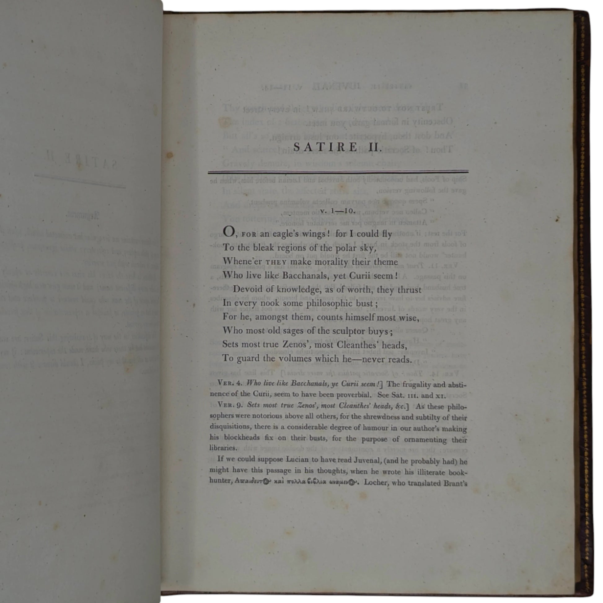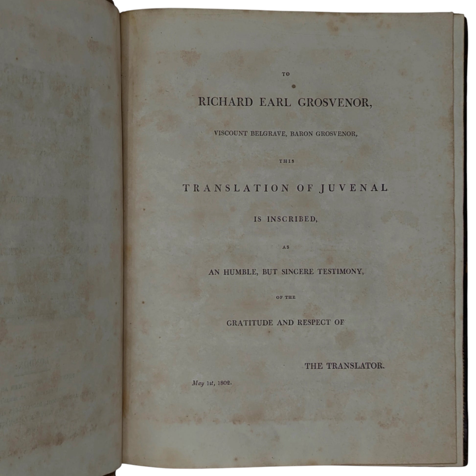 GIFFORD, William (Translated into English verse by). The Satires of Decimus Junius Juvenalis. London: Printed by W. Bulmer and Co. for G. and W. Nicol, Booksellers to His Majesty, 1802. 4to, 281 x 220 mm.