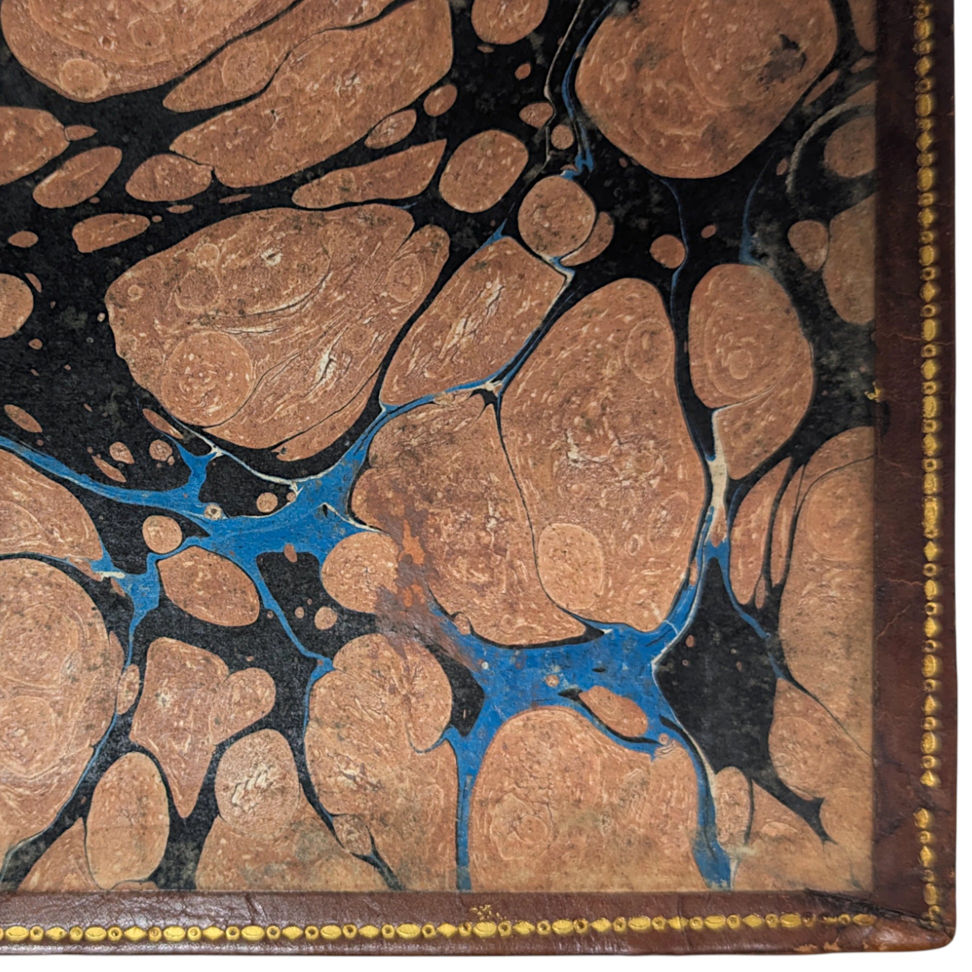 Contemporary full diced calf, twin-rule in gilt to covers, gilt lettering and repeated decorative motif to spine, top edge coloured, fore edge and lower edge speckled, additional gilt motifs to turnins, hand-marbled endpapers. Externally worn and marked in places, professionally rebacked, binding square and overall firm but with front and rear hinges partially torn (with the last three leaves partially loose), occasional heavier spotting and offsetting throughout (primarily from the plates) but none affecting legibility.