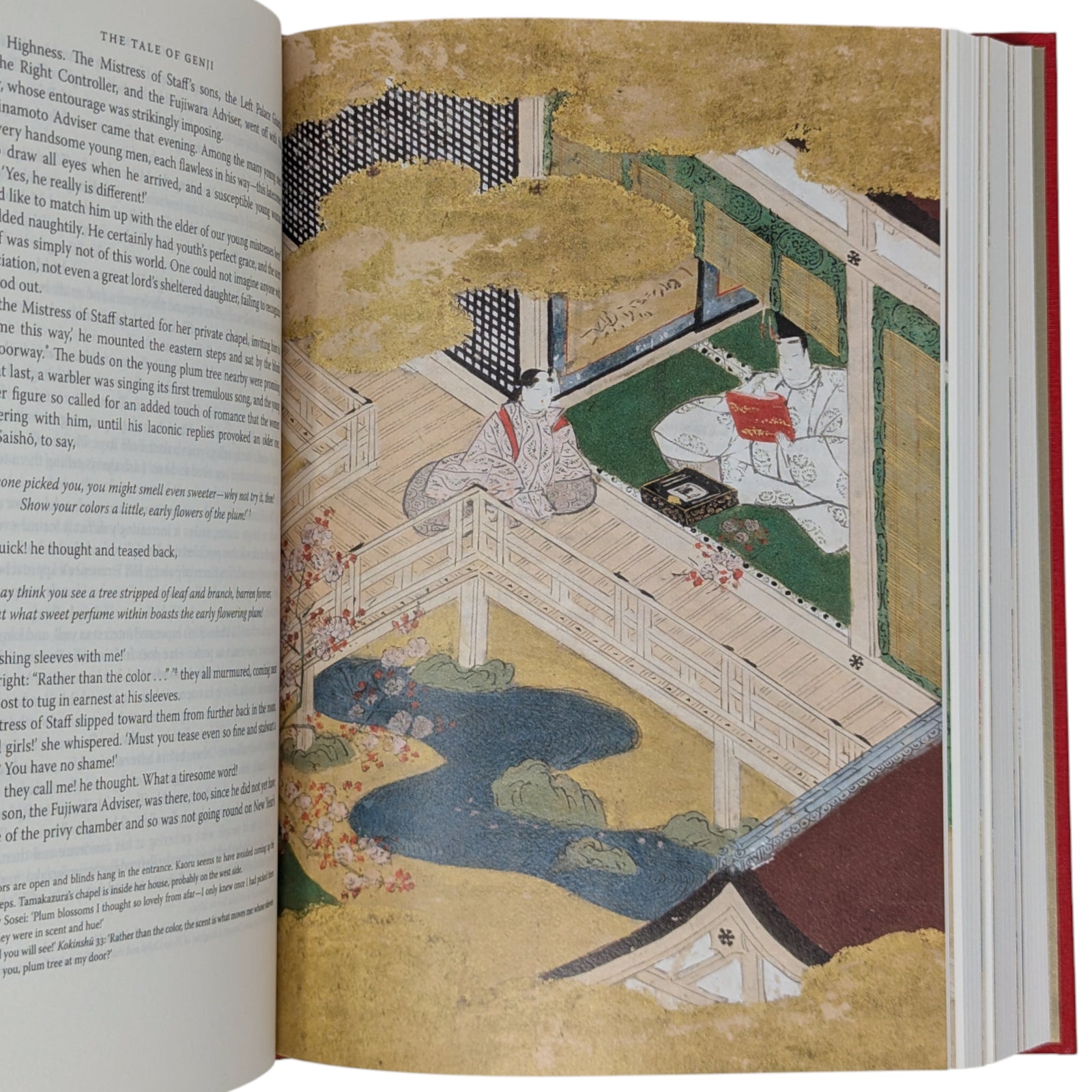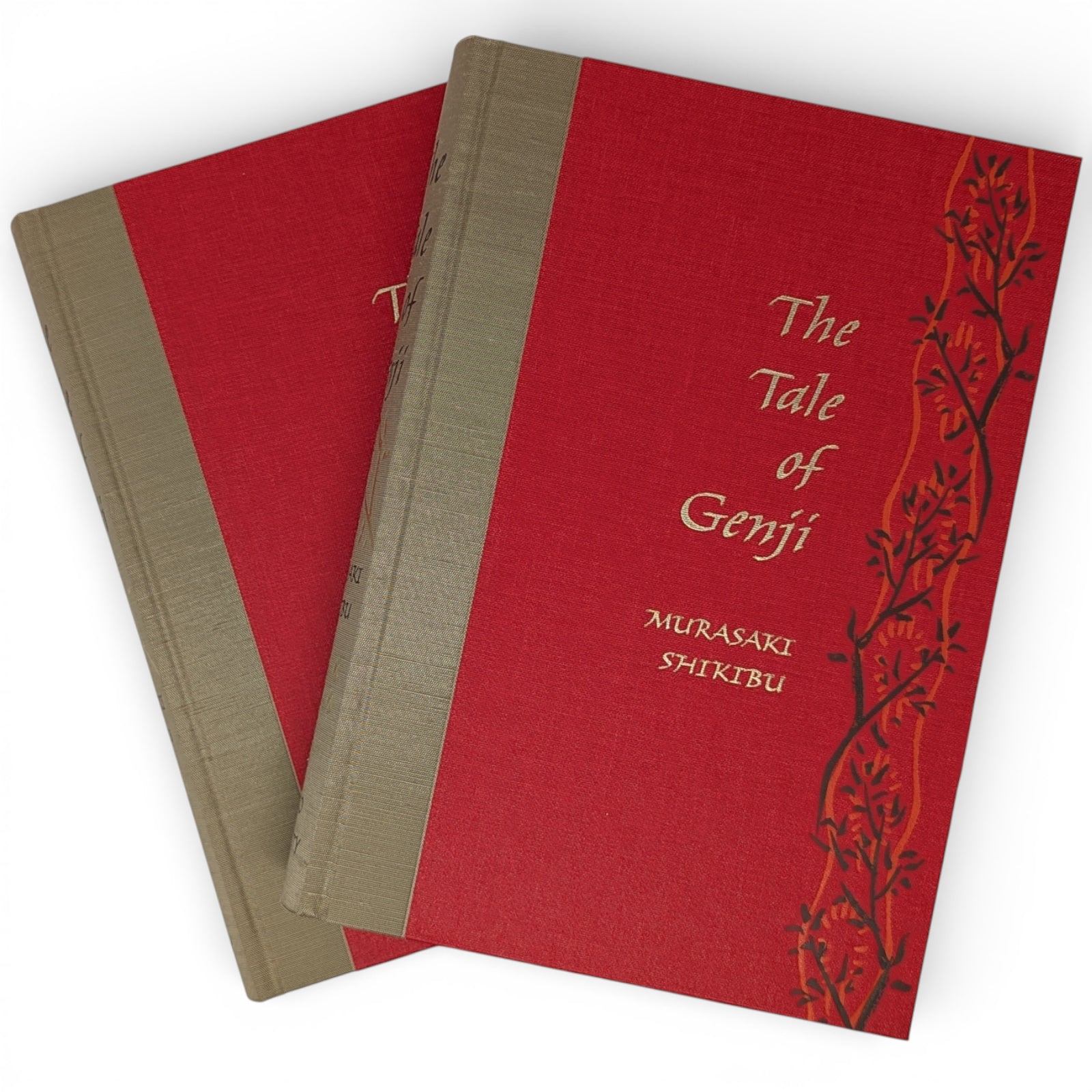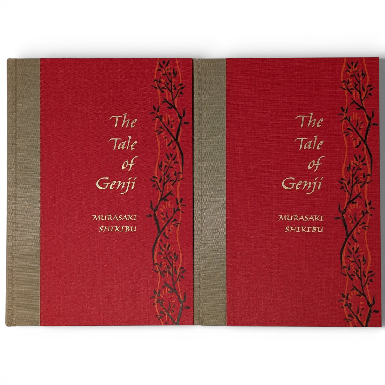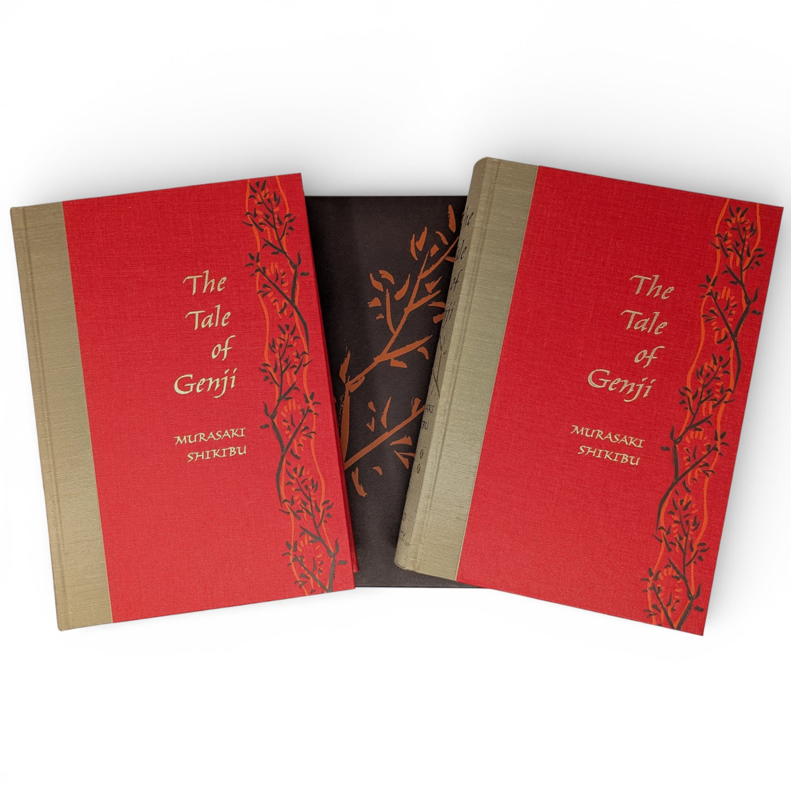 Translated and introduced by Royall Tyler. Illustrations by Tosa Mitsunobu and Minoru Sugai. 252 × 177 × 47–48 mm. 2 vols (see below). Type: Warnock Pro with Elli for display. Printed and bound by Kösel in full red and gold cloth blocked in gold, black and orange; gold end leaves. Dark brown two-volume slip case blocked in dark orange on one side. Originally written in the eleventh century, the colour illustrations come from the earliest complete depiction of what is widely regarded as the world’s first novel. The album, now held by Harvard Art Museums, dates from the early sixteenth century. In addition to the plates, copious black and white illustrations by Minoru Sugai from the original Japanese edition are in the text. The two volumes are as follows: