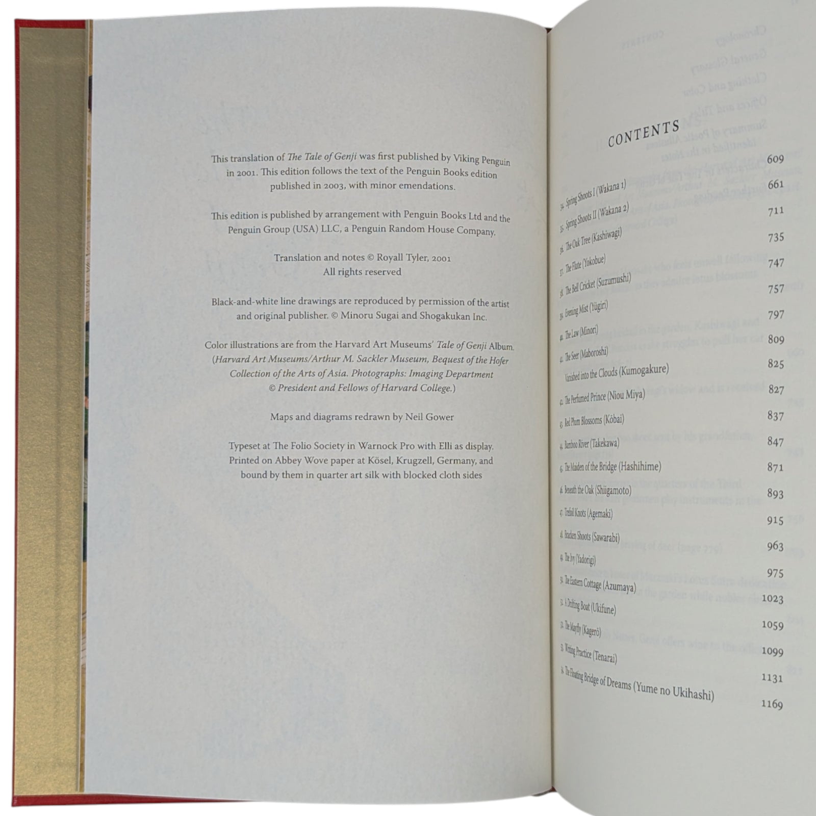[2] . . . [ornament] translated by Royall Tyler. Pp. [i–v] vi–viii [ix–x], [607–611] 612–1250 [1251–1252]: [21] leaves of colour plates. Includes 1 map and 4 diagrams redrawn by Neil Gower on pages [1179–1182].
