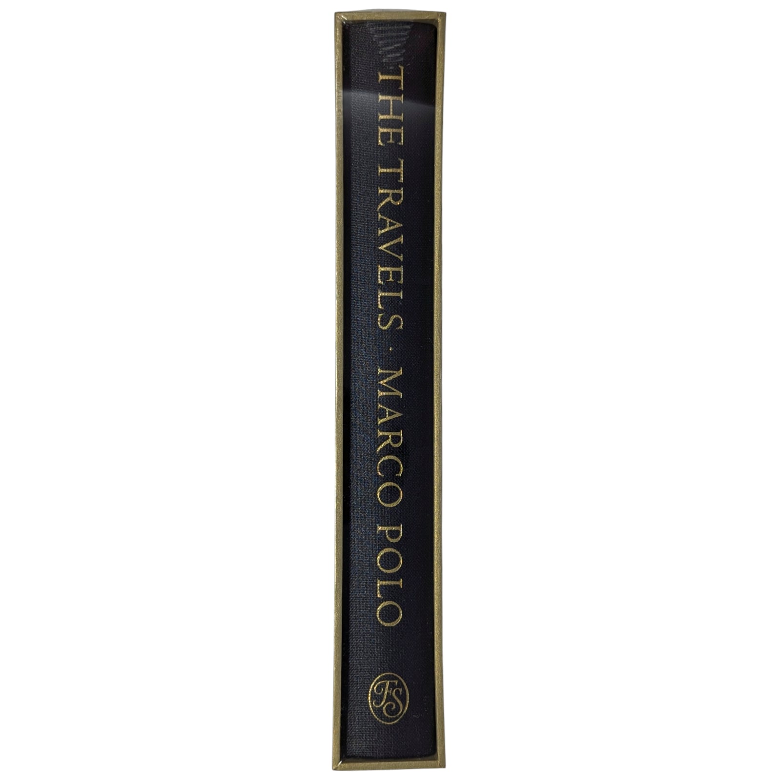 The Travels, Marco Polo. London: The Folio Society, 2019. Translated and introduced by Nigel Cliff. 279 × 188 × 34 mm. Pp. [i–vi] vii–xlii, [1–2] 3–354 [355–358]. Type: Centaur with Poetica for display. Printed and bound by C & C Offset. Quarter bound in black buckram with paper boards printed with marbled design by Jemma Lewis; orange-brown endleaves. Gold slip case. Miniatures from an illuminated manuscript (MS Fr. 2810) housed at the Bibliothèque Nationale de France are reproduced in colour throughout. A note on the illustrations, by N. Rowena Anketell, is included on pages [xxxvii–xxxviii].