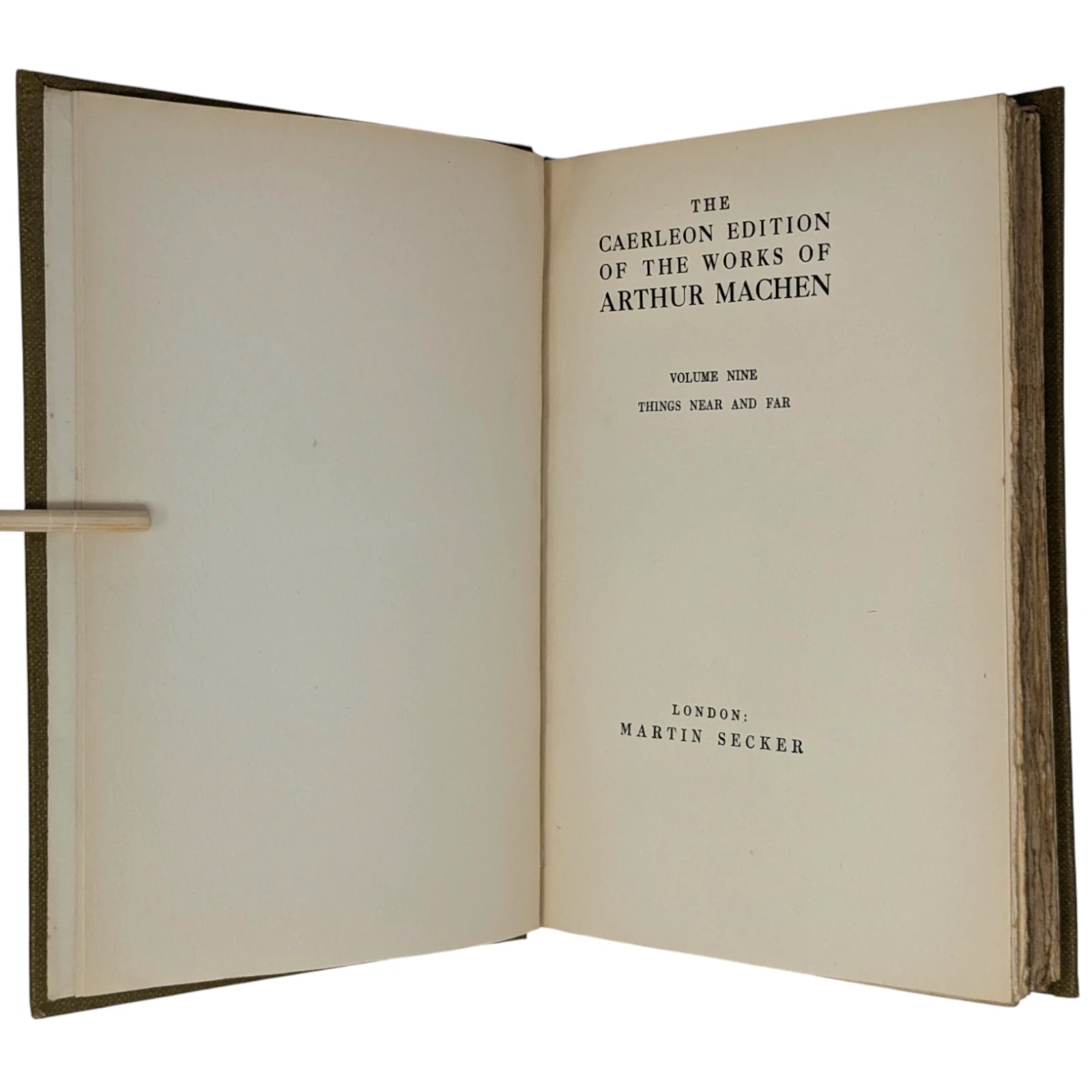 The set comprises Vol. I: The Great God Pan, The Inmost Light, The Red Hand; Vol. II: The Three Imposters; Vol. III: The Hill of Dreams; Vol. IV: The Secret Glory; Vol. V: Hieroglyphics; Vol. VI: A Fragment of Life, The White People; Vol. VII: The Terror, The Bowmen, The Great Return; Vol. VIII: Far Off Things; Vol. IX: Things Near and Far. NCBEL IV, p.645.