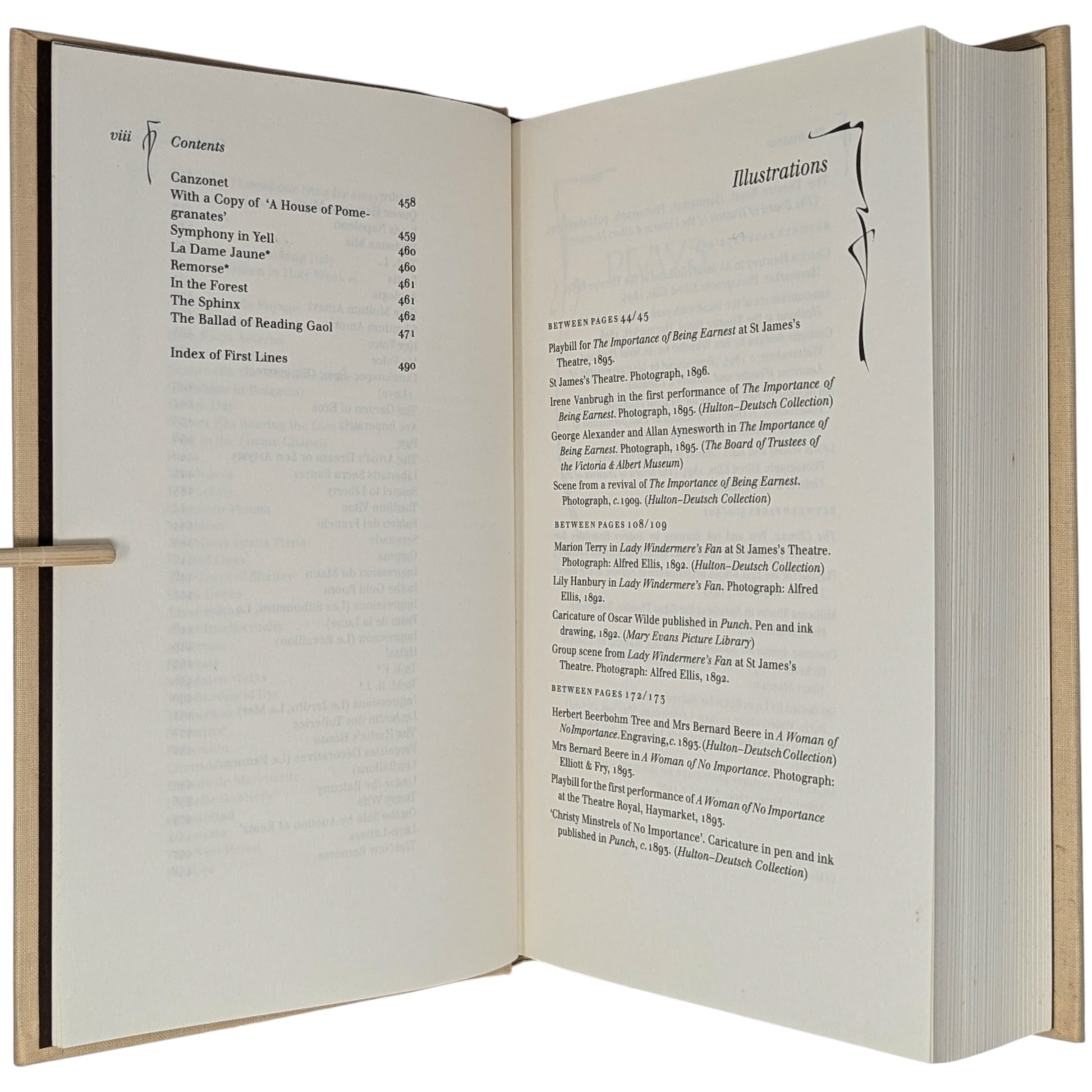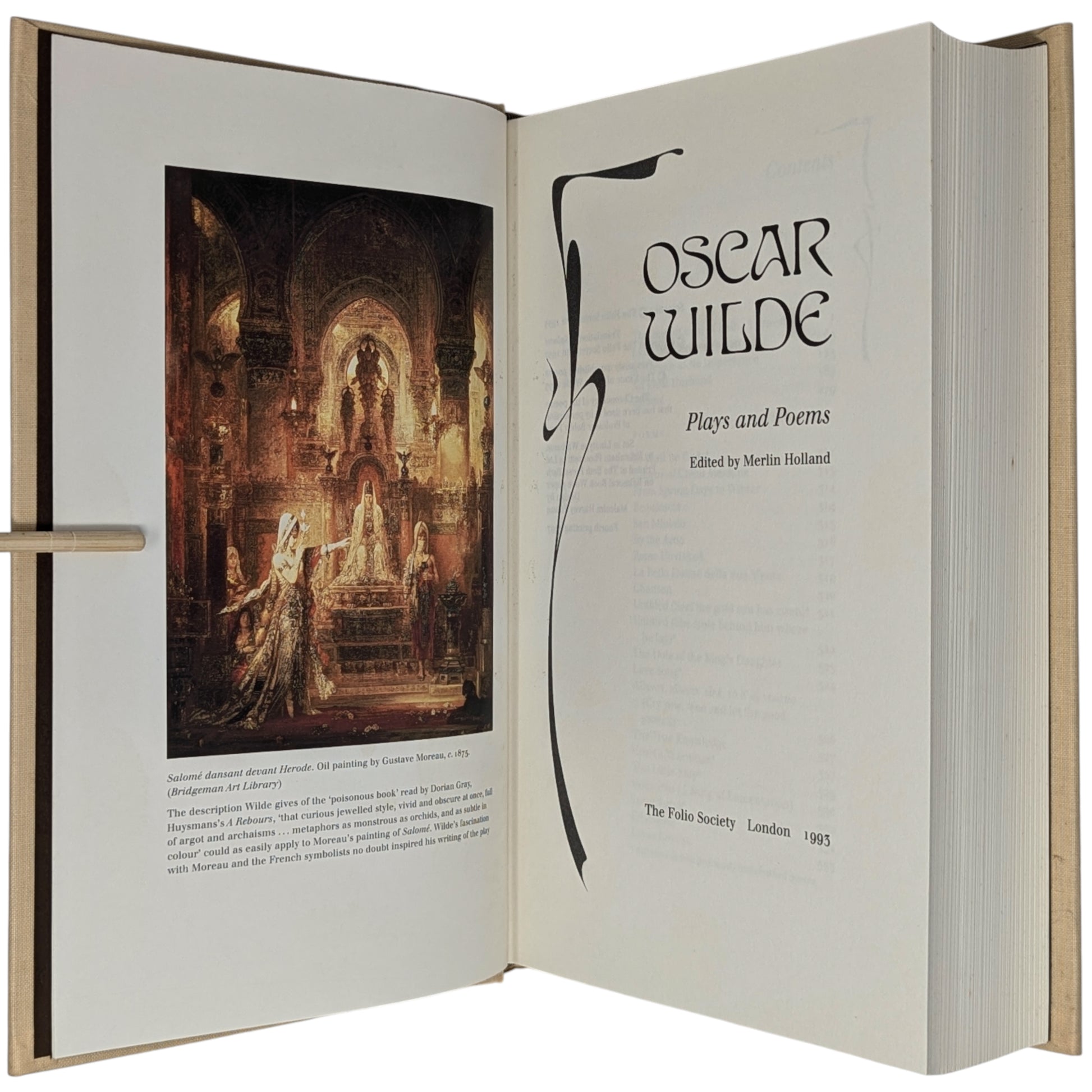 [2] Oscar Wilde, Plays and Poems. Edited by Merlin Holland. Pp. [i–v] vi–x [xi–xii], [1] 2–492: colour frontispiece, [20] pages of plates. The plates reproduce photographs of theatres and early performances of the plays, playbills and posters, and costume and set designs. The frontispiece shows Moreau’s painting Salomé dansant devant Hérode.