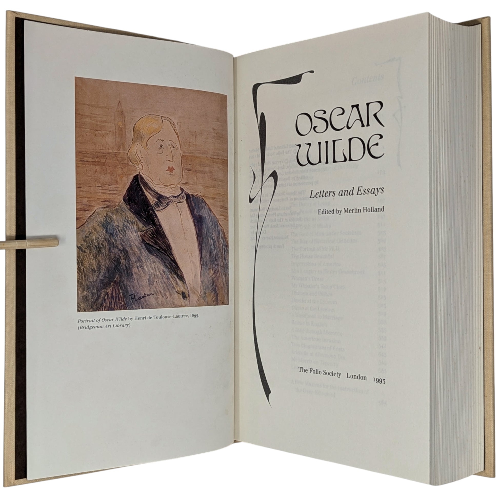 [3] Oscar Wilde, Letters and Essays. Edited by Merlin Holland. Pp. [i–v] vi–viii [ix–x], [1] 2–576 [577–582]: colour frontispiece, [12] pages of plates. The plates reproduce contemporary documents and photographs of Wilde, his family and circle. The frontispiece shows Toulouse-Lautrec’s portrait of Wilde.