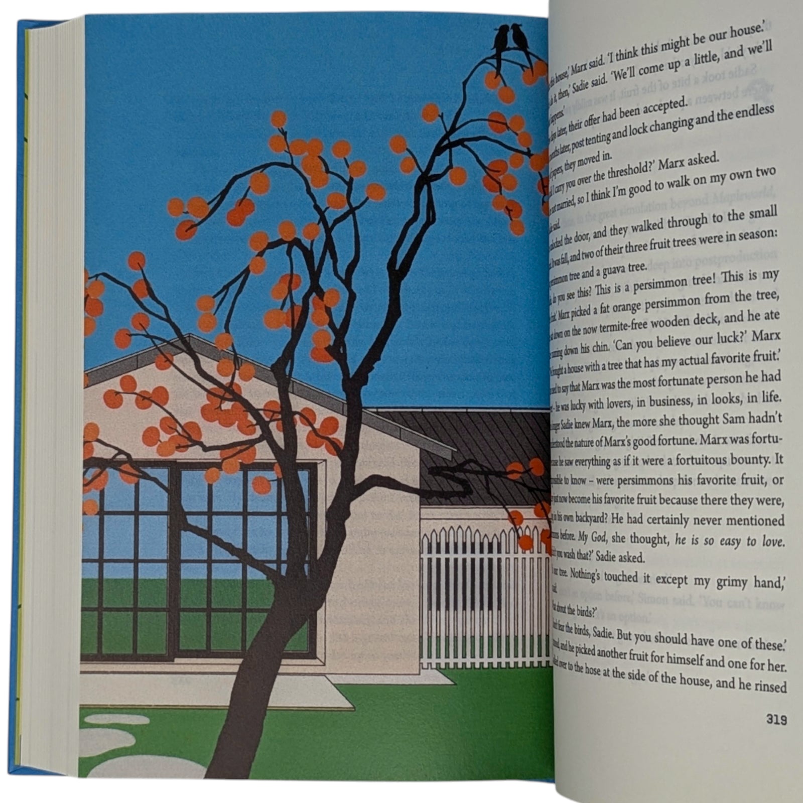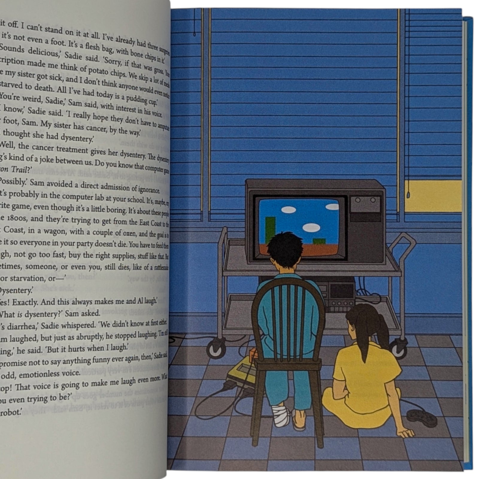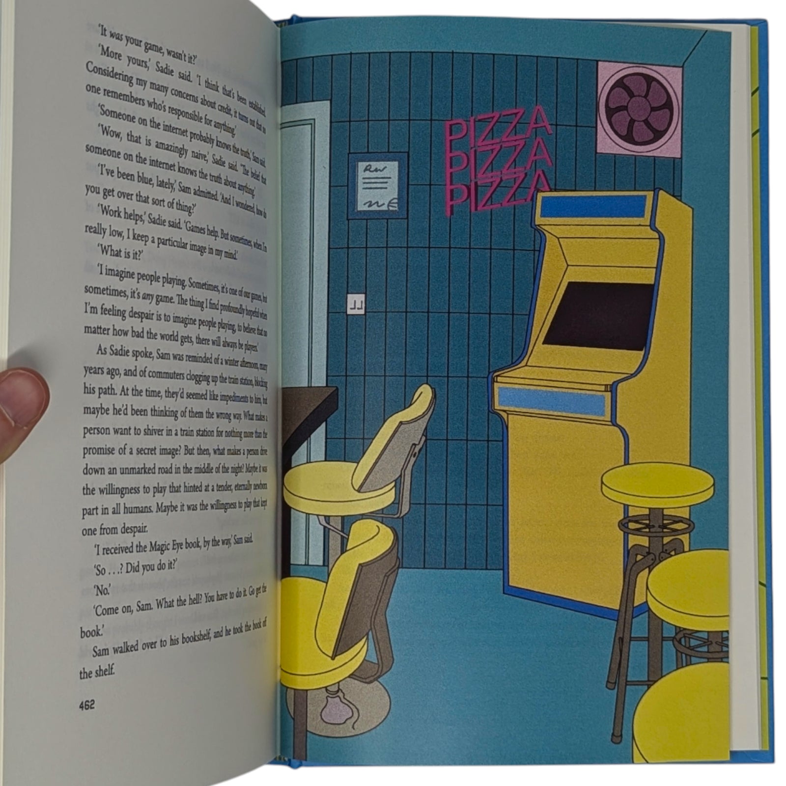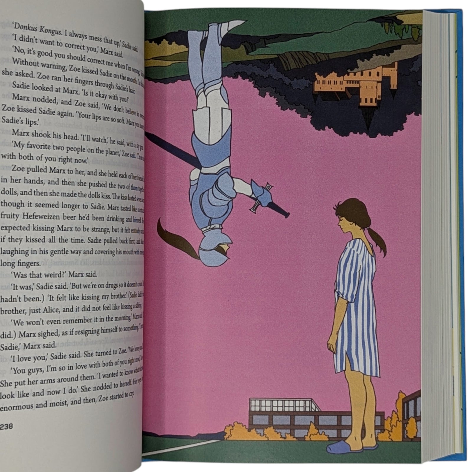 9½ inches x 6¼ inches, 496 pp. Bound in printed paper with text blocked in silver foil and blue, and illustrations of Sam to upper cover and Sadie to rear, illustrated endpapers, seven full-page colour illustrations including frontispiece. Housed in a holographic slipcase inspired by Hokusai's Great Wave. With a brand-new introduction by the author, this is the first-ever illustrated edition of this luminous story of friendship, creativity and connection in the digital age.